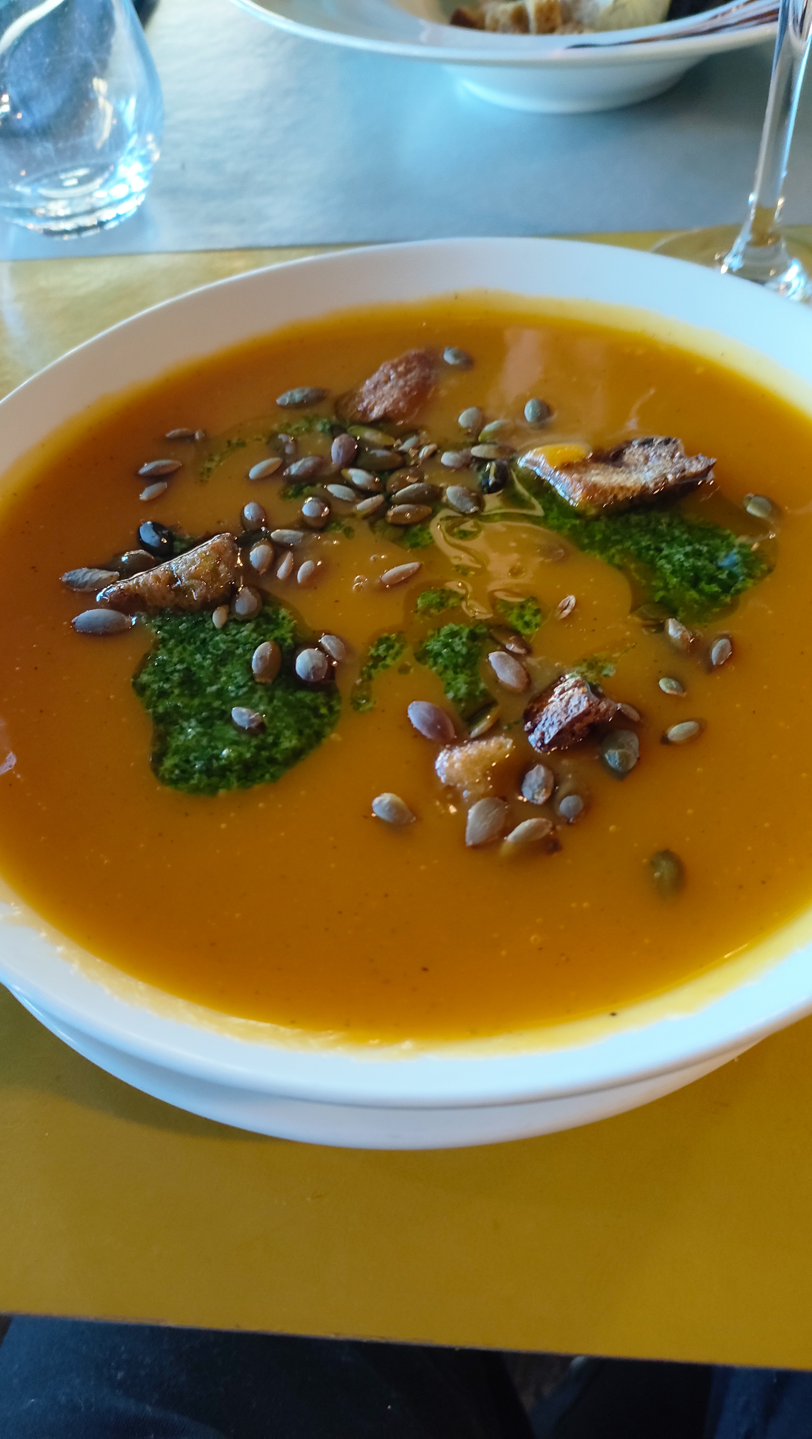Restaurant bien situé! Cadre et ambiance sympa. Présentation et cuisson des plats à revoir...le poisson ne doit pas être trop cuit la lotte comme le rouget barbet...le foie gras et le velouté de courge fumée excellent (repas à la carte). Propose des plats du jour.