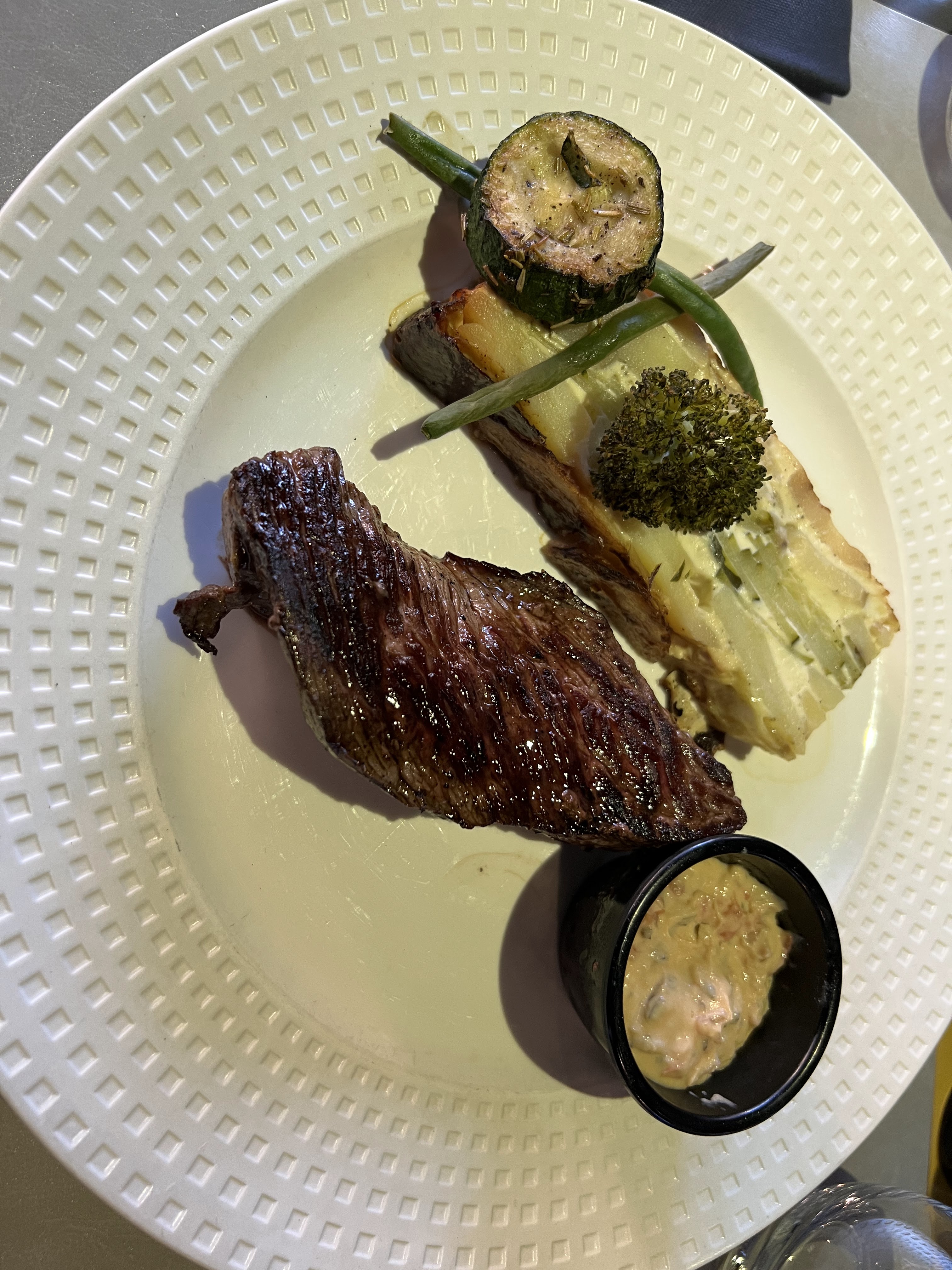 Très déçue... Tout est à la carte et les plats sont très chers pour ce que c'est. J'ai renvoyé mon plat car la cuisson n'était pas du tout celle demandée ; pour 27€ l'entrecôte, j'estimais quelle devait être bonne, après rectification c'était OK. Le plat de mon conjoint quant à lui était moins cher mais pas copieux du tout, et le pressé de souris d'agneau très gras, on aurait dit une andouillette... La serveuse insiste pour que l'on consomme plus et fait limite familière... Enfin, la marge sur le vin est exagérée... Nous avons payé la vue sans être installés vue mer, donc ça fait un peu cher.