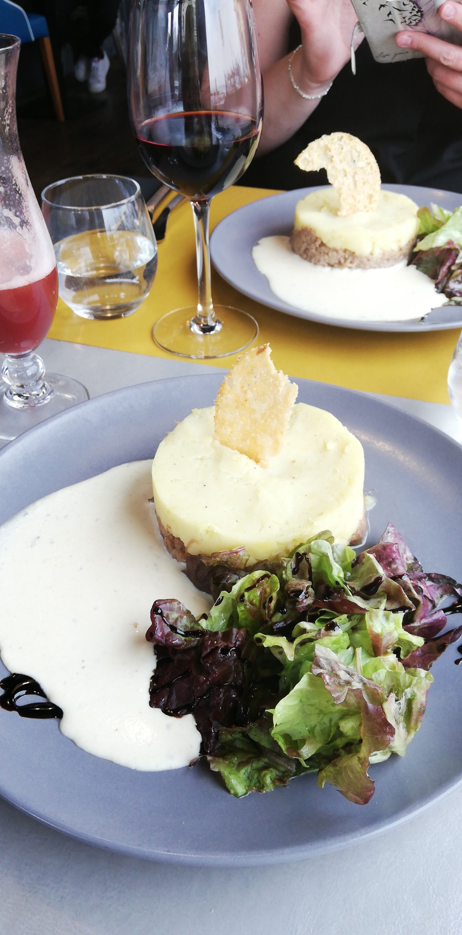 A fuir absolument…. Code barre menu impossible à ouvrir, du coup menus papiers avec la pandémie, longue attente avant de voir un serveur, menu du jour proposé… brandade de poisson….. wouah wouah ….. voir la photo … une purée de PDT avec quelques feuilles de salade déjà très avancées brunâtres limite « pourries » et quelques miettes de poisson incorporés…. Du pain très chaud décongelé au micro ondes, impossible à manger … Avec le café….. addition …. 13,90 €