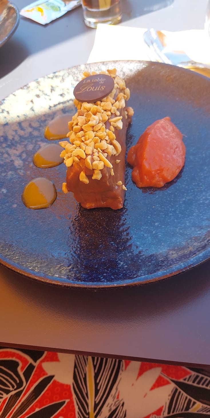 Très bon repas à la table de Louis. Coquilles St jacques puis lotte. C'était délicieux. Sauf le dessert n'était pas à la hauteur. Soupe de chocolat avec une glace quelconque et des roses des sables.