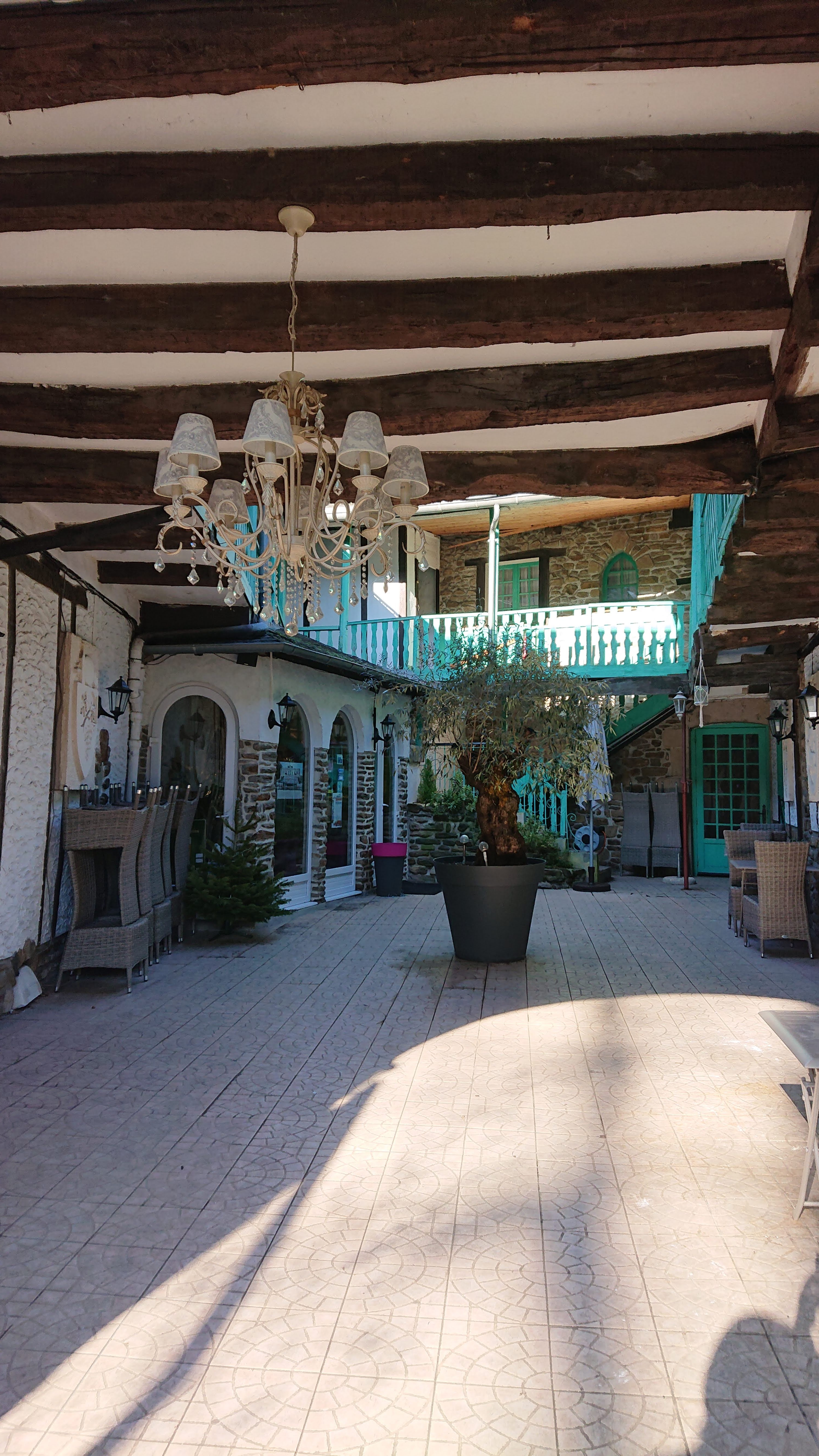 Nous avons mangé ici un dimanche midi en mars 2019. Le restaurant et la cour semi-ouverte sont très jolis et il y avait la possibilité de manger à l'intérieur dans la salle à manger. Le personnel était sympathique et efficace, mais la nourriture était malheureusement décevante. Trop d'accent mis sur la présentation et la décoration arty-farty tout en manquant les éléments essentiels de base. Notre entrée de saumon fumé était sous-cuite et trop assaisonnée tandis que le plat principal de bœuf du Limousin était trop cuit (pour la première fois en France !) et sous-assaisonné. Le dessert d'ananas rôti était accompagné d'une mousse excessive. En fait, il y avait une forte dépendance à la mousse dans chaque cours, ce qui pour moi est inutile et nuisible. Des cinq repas que nous avons pris pendant notre court séjour en Corrèze, celui-ci était le plus cher et le seul qui nous a déçu.