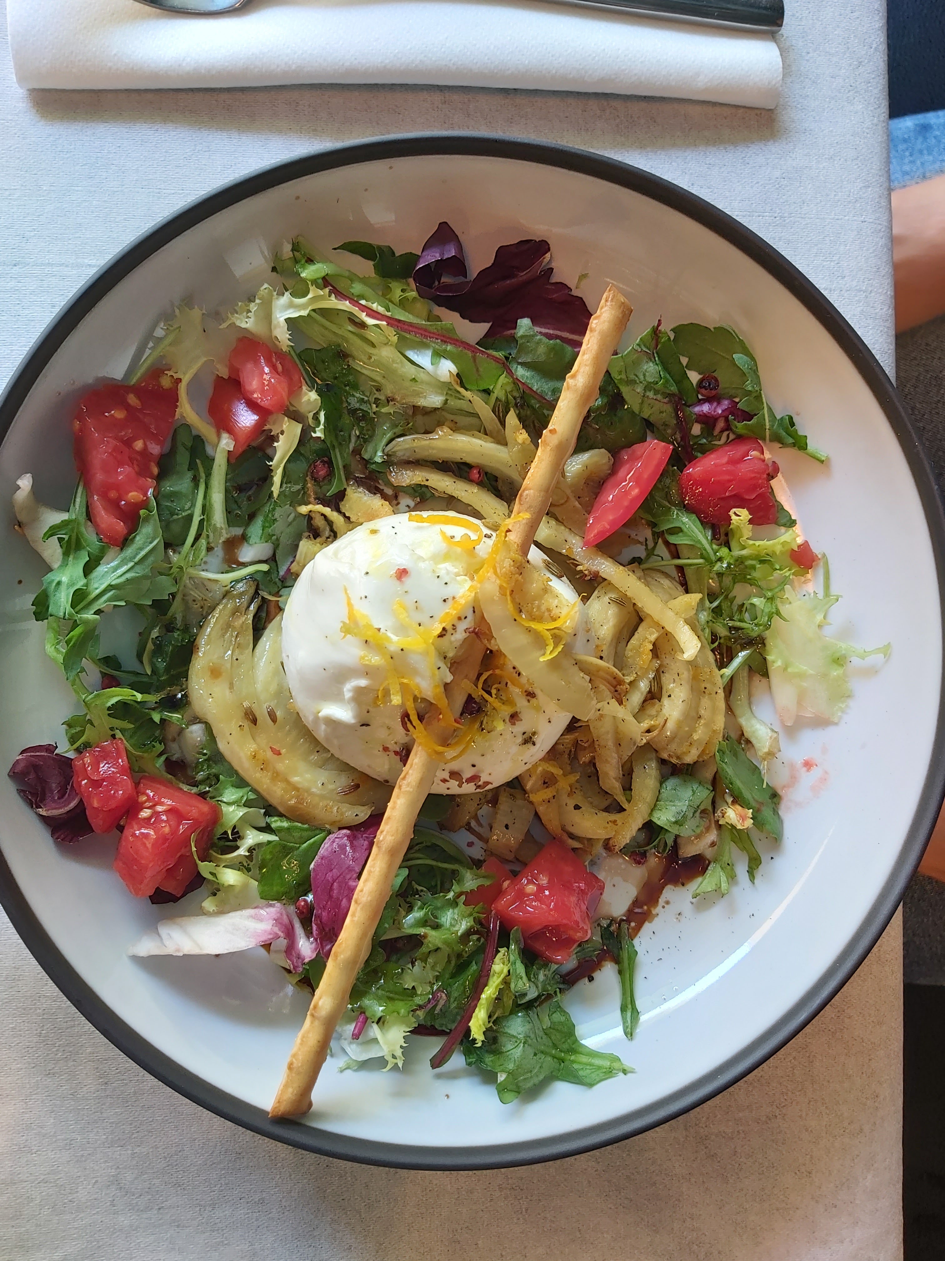 Carte du midi assez restreinte, mais vous aurez quand même une option végétarienne : un plat de spaghettis sauce tomate avec basilic, tomate cerise mozzarella. Les saveurs étaient au rendez-vous même si le plat sur papier paraît assez simpliste. Le service était rapide et souriant.