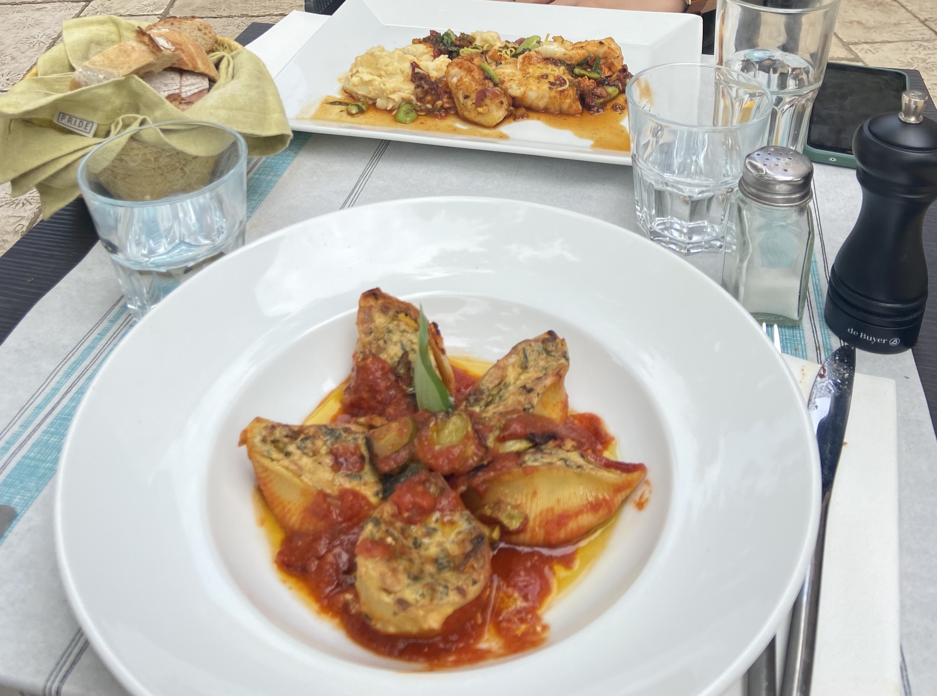 Déjeuné dans ce restaurant avec ma compagne, en arrivant de la gare de cassis. Nous avons pris des conchiglioni (plat) et une burata (entrée) pour madame. Attente un peu longue, mais les plats étaient très finement cuisinés, avec de bon produits… En revanche le plat de pâte avait vraiment un gout de trop peu, honnêtement 6 pâtes fourré pour 18€ (Je les aie compté et savourés), nous sommes dans des quantités de restaurants gastronomique (ce qui dans ce contexte ne m'aurais pas choqué) …Mais là… j’ai mangé autant de pain que de pâtes pour ne plus avoir faim. Les plats sont bien inégaux, le couple d’en face qui avait pris chacun un plat de spaghetti au saucisses sont repartis avec une barquette aluminium, tellement pour eux c’était copieu… bref un avis mitigé…