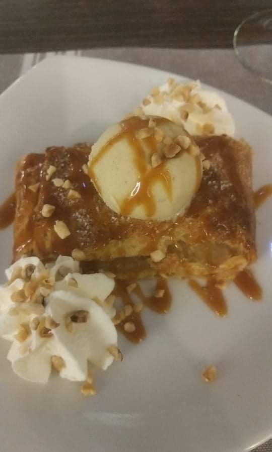 Cassoulet typique et très copieux, avec des ingrédients frais, tarte à la pomme avec glace à la vanille et caramel délicieuse ♥️♥️ Service et accueil chalereux dans une bonne ambiance, merci beaucoup !