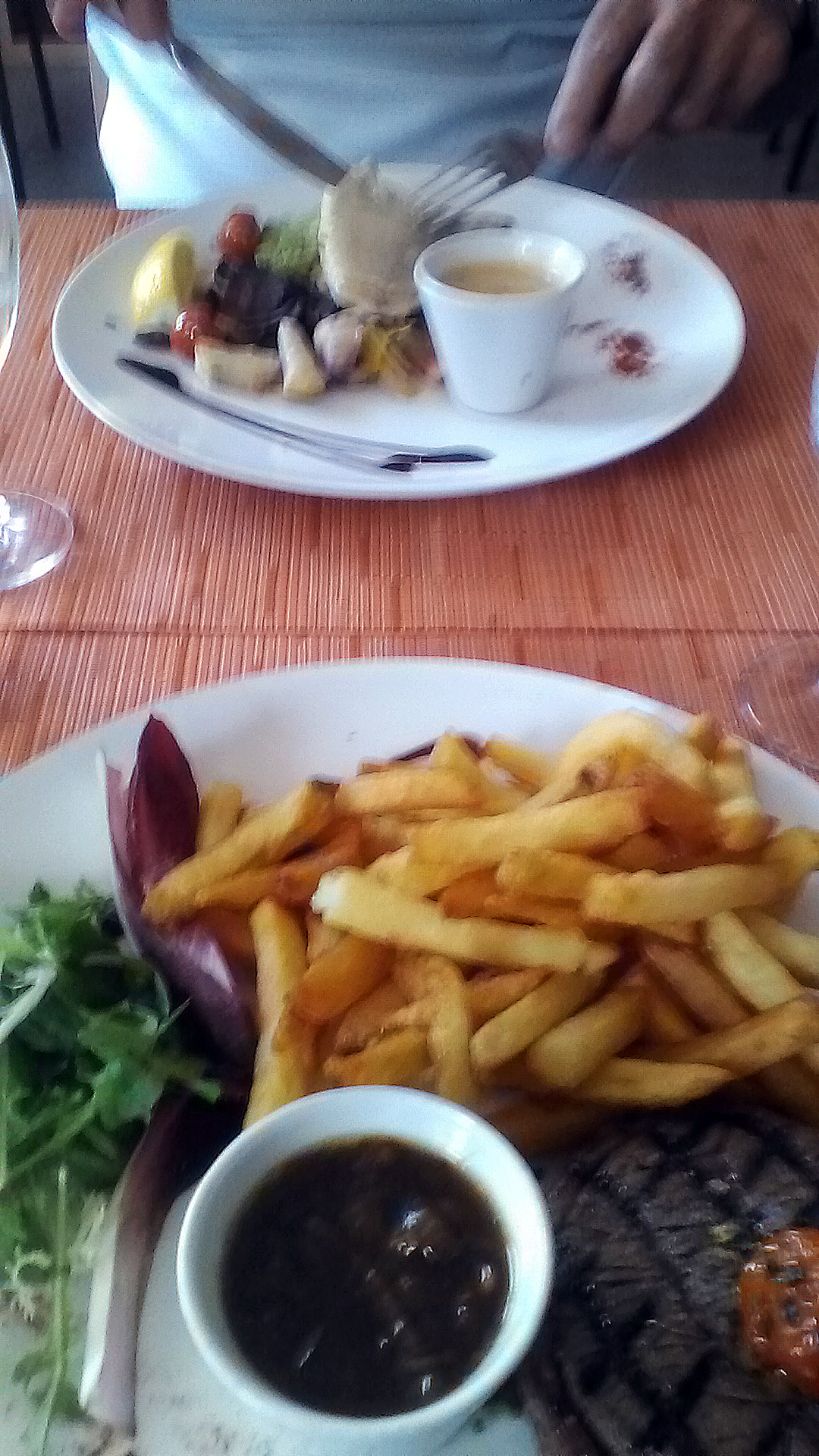 Le long de la rive hier, m'en allant promener ! La table était si belle je m'y suis restauré. Bon accueil et équipe souriante. La cuisine choisit ses produits et l'on s'en réjouit ! Un régal à recommander...