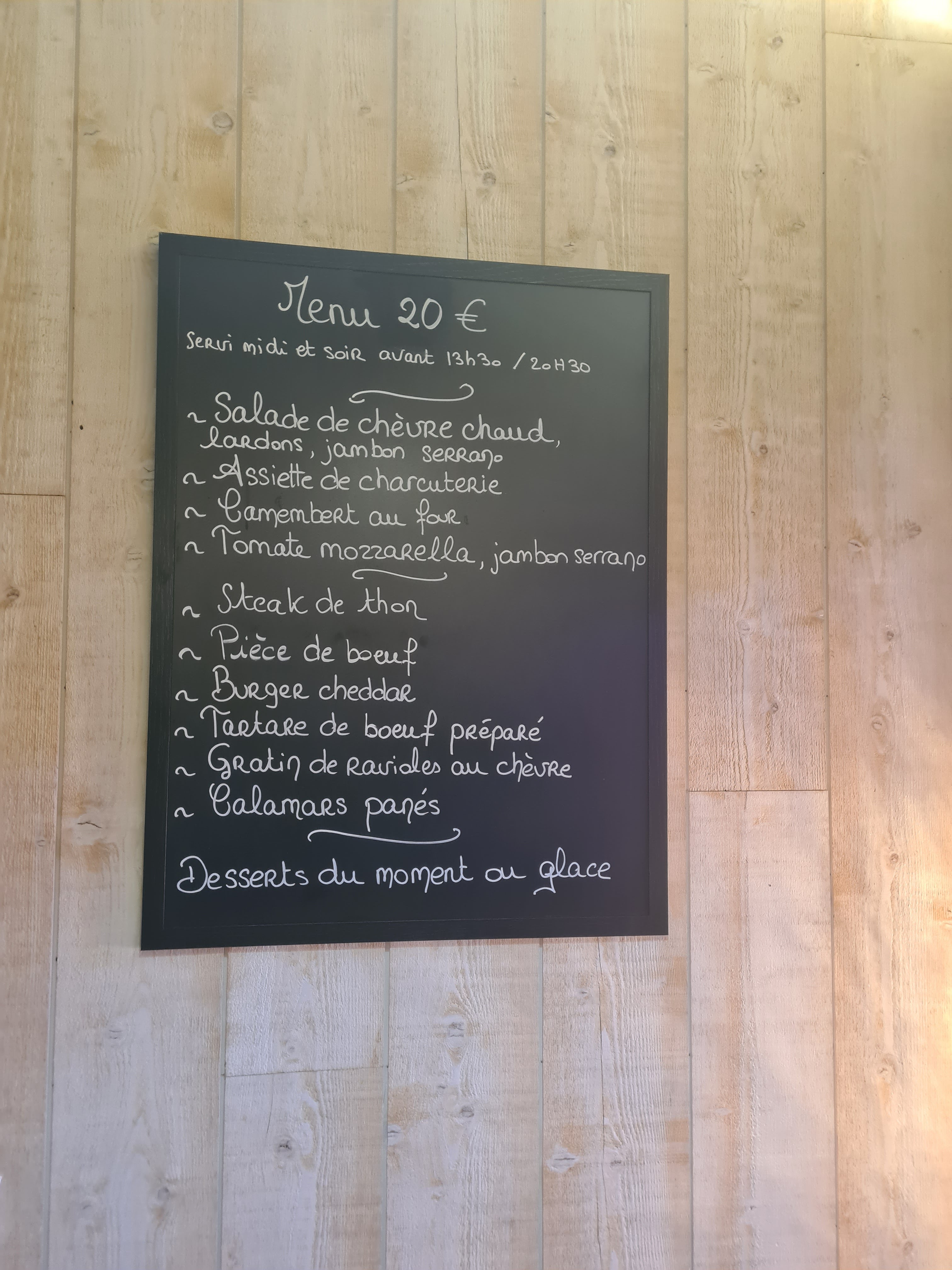 Serveuse pas très aimable. Nous avons commandé un camembert rôti, il s’avérait que celui ci était enfourné avec de la persillade et des tomates cerises entières à l’intérieur (?). Frites non maison alors que l’ardoise annonce une cuisine maison. « Manque de place en cuisine » alors que nous avons vu des restaurants aussi petits faire leurs frites eux-mêmes. Il y a beaucoup mieux en terme de rapport qualité/prix aux alentours.