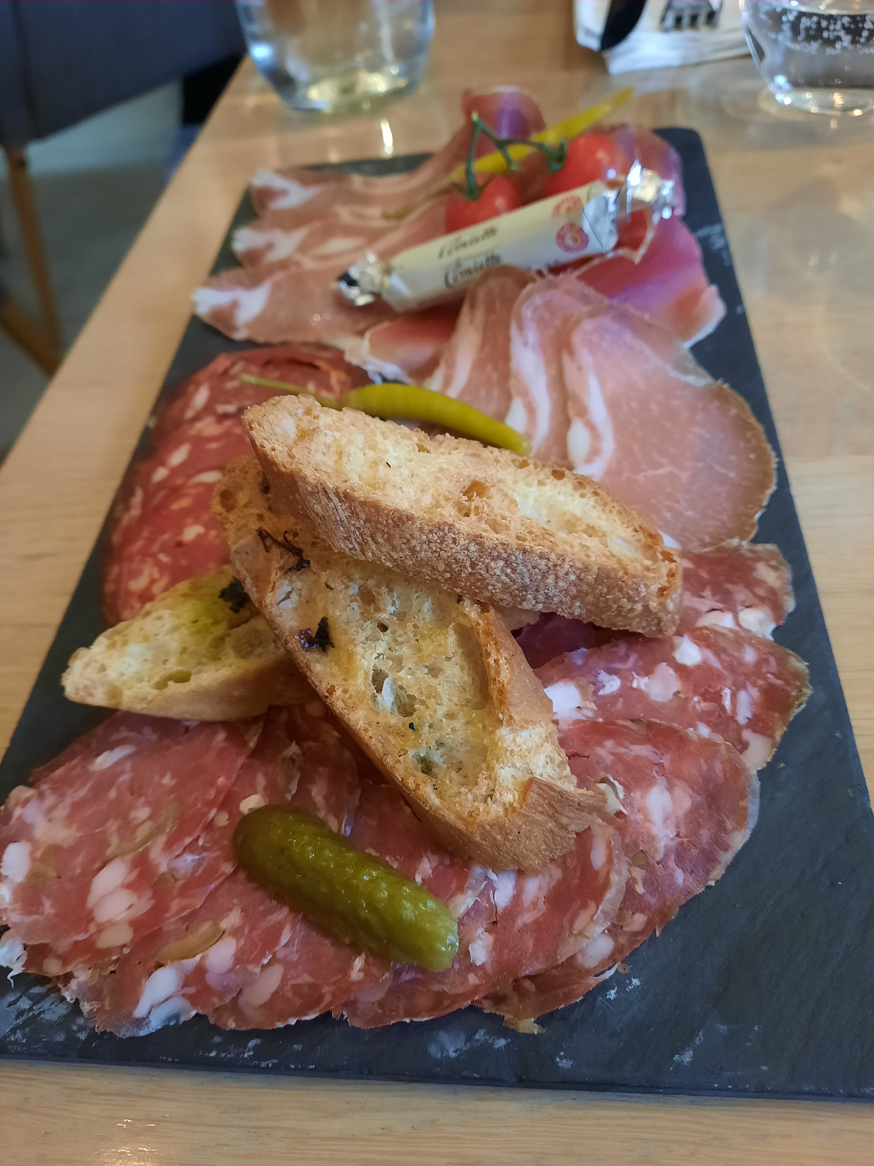 Plateau de charcuterie excellent !! Néanmoins les cuissons des plats laissaient à désirer, que ce soit le risotto de homard ou la côte de cochon, ils étaient trop cuits et désagréables à la mâche. Nous étions deux avoir pris la côte de cochon et l’autre personne en était très satisfaite. La pavlova était assez bonne mais aurait pu mériter plus de fruits.
