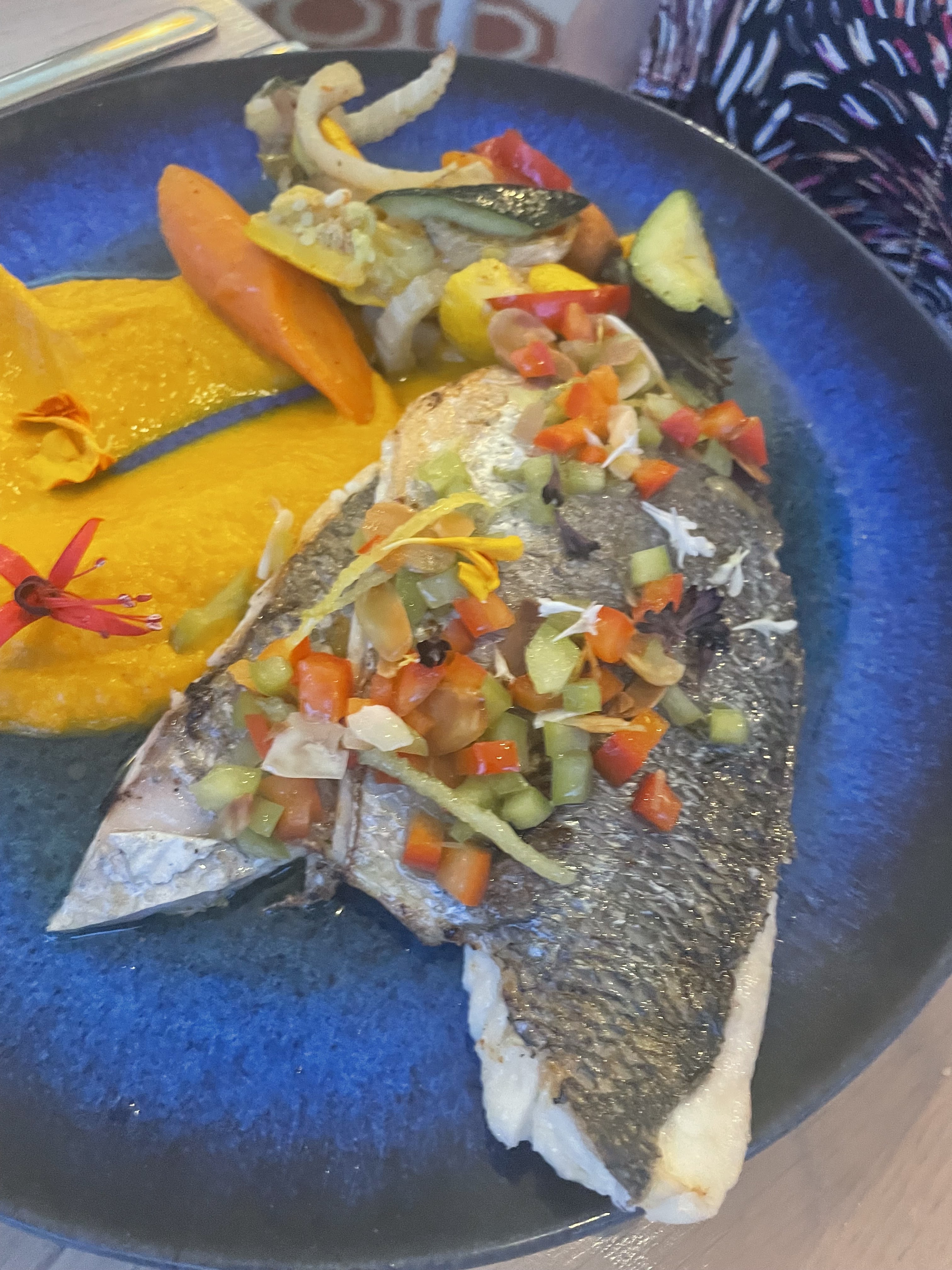 Restaurant hyper agréable et avec une belle déco chaleureuse. Le filet de bar aux légumes était absolument délicieux et le service au top. A recommander !