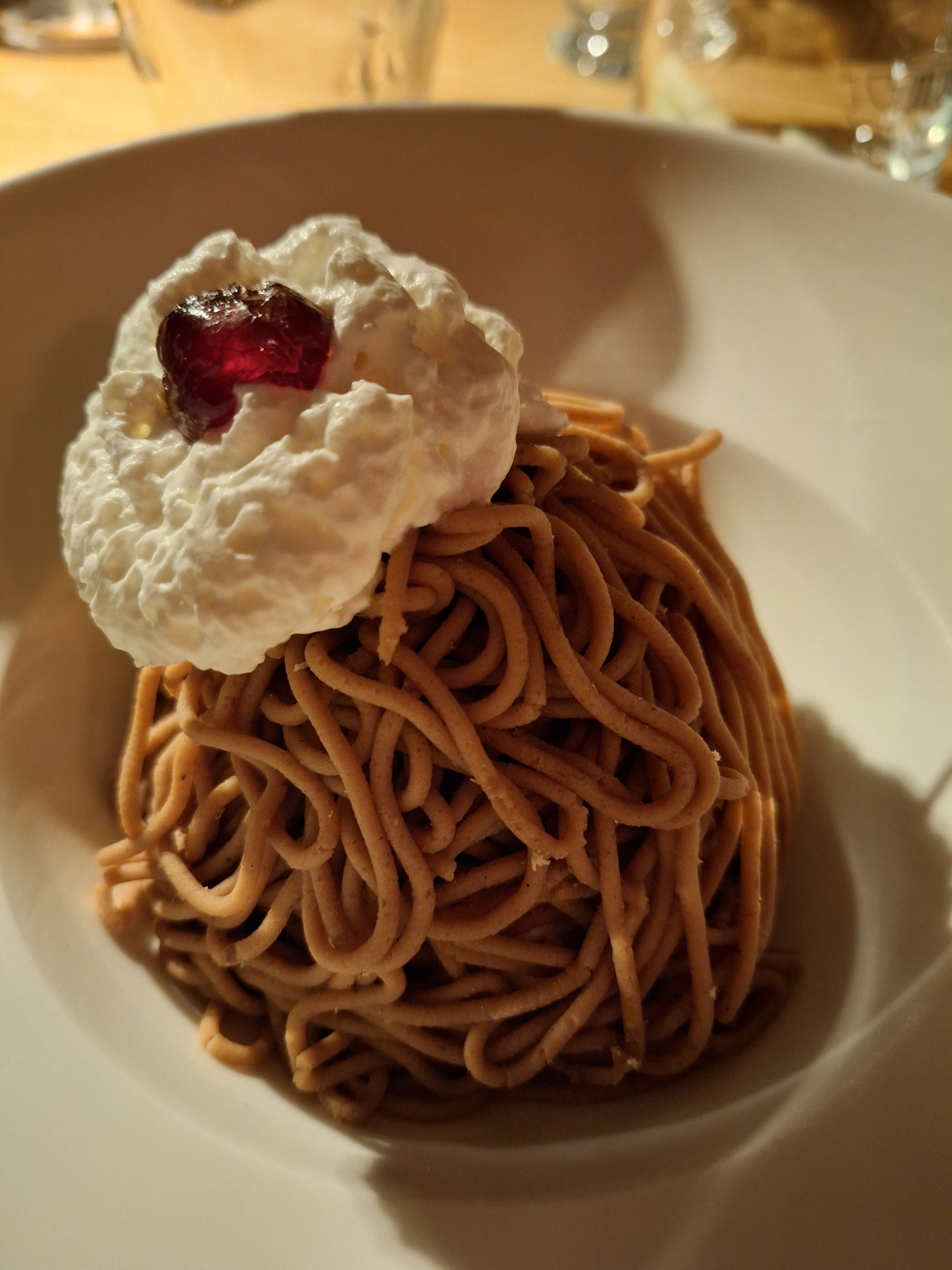 Très belle découverte pour moi ce soir. Le repas était copieux. Une note spéciale pour le dessert la torche au marron spécialité de la maison, qui était très légère et agréable à manger en fin de repas.