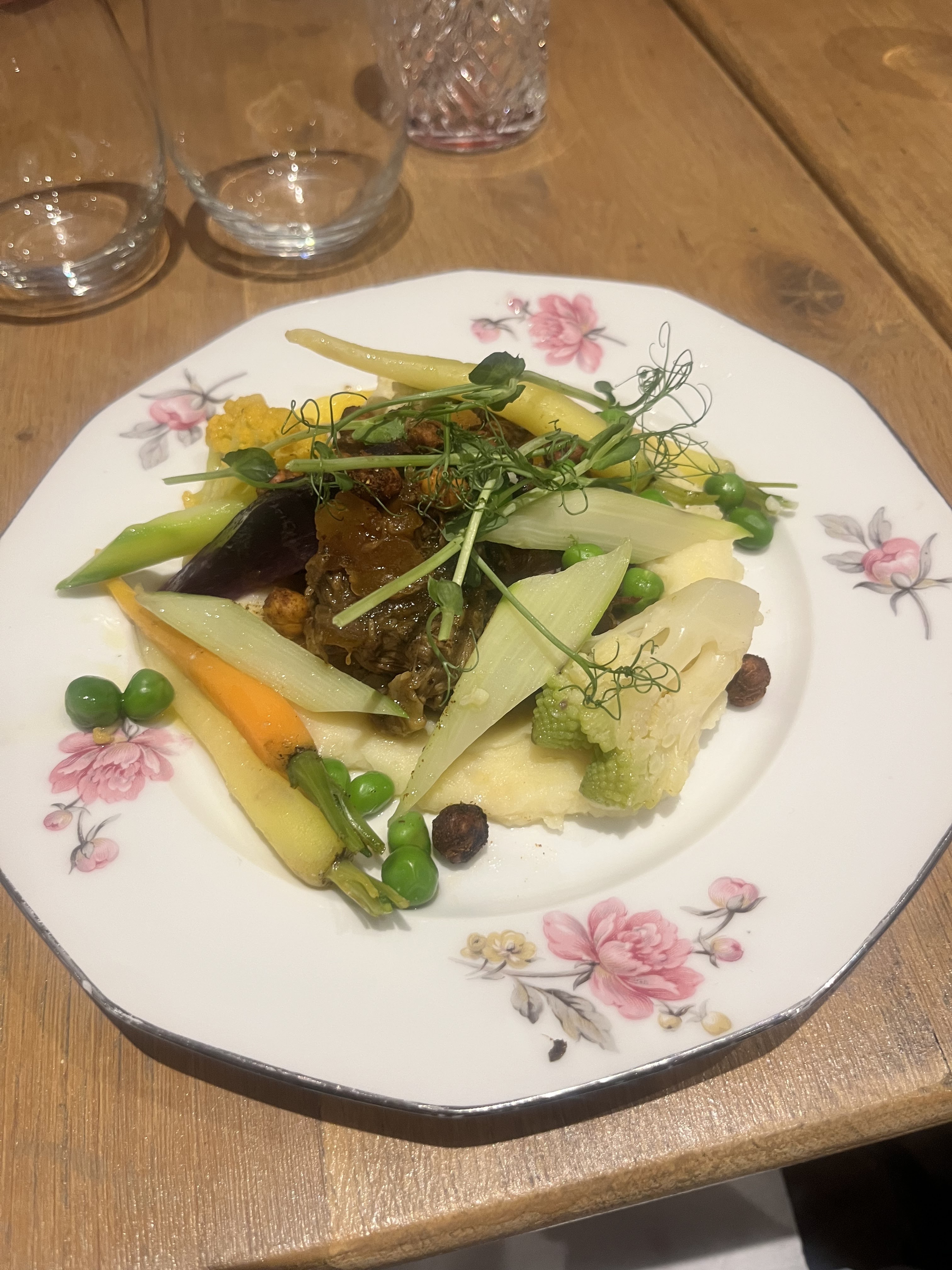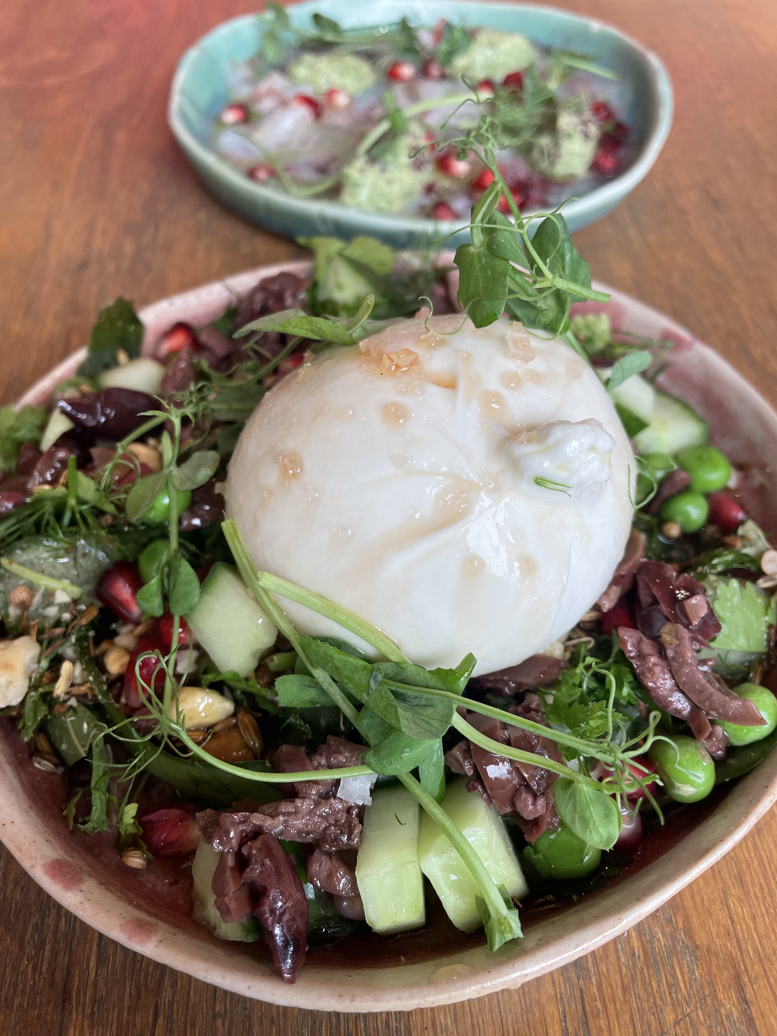 La décoration du restaurant est pure et chaleureuse. L'entrée et le plat sont excellents, colorés et les mélanges de saveurs sont très bien réfléchis. Je recommande d'y aller les yeux fermés.