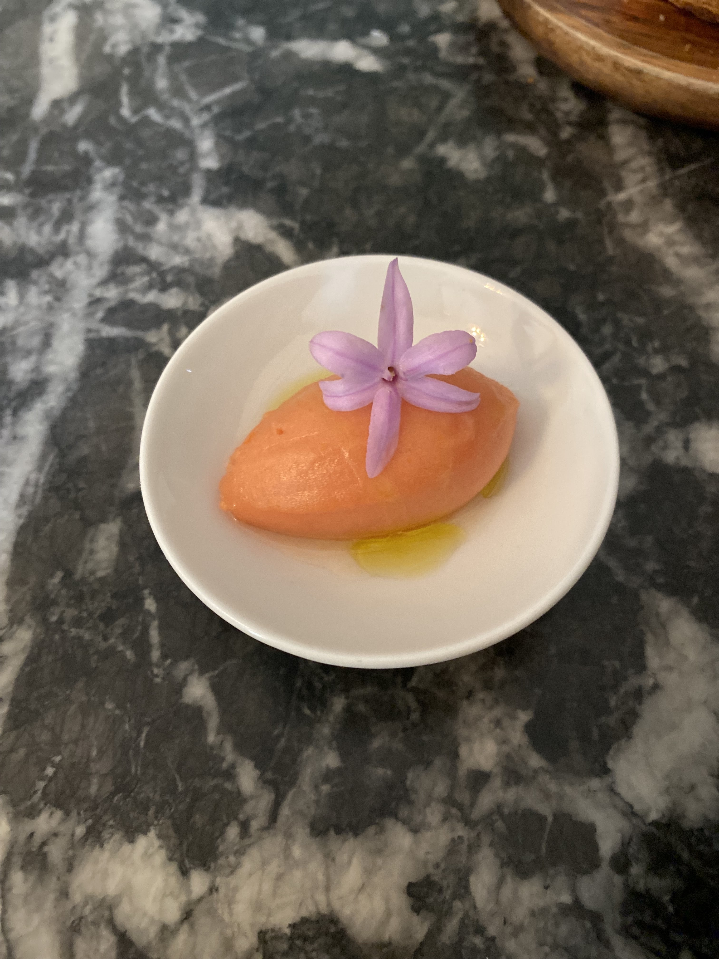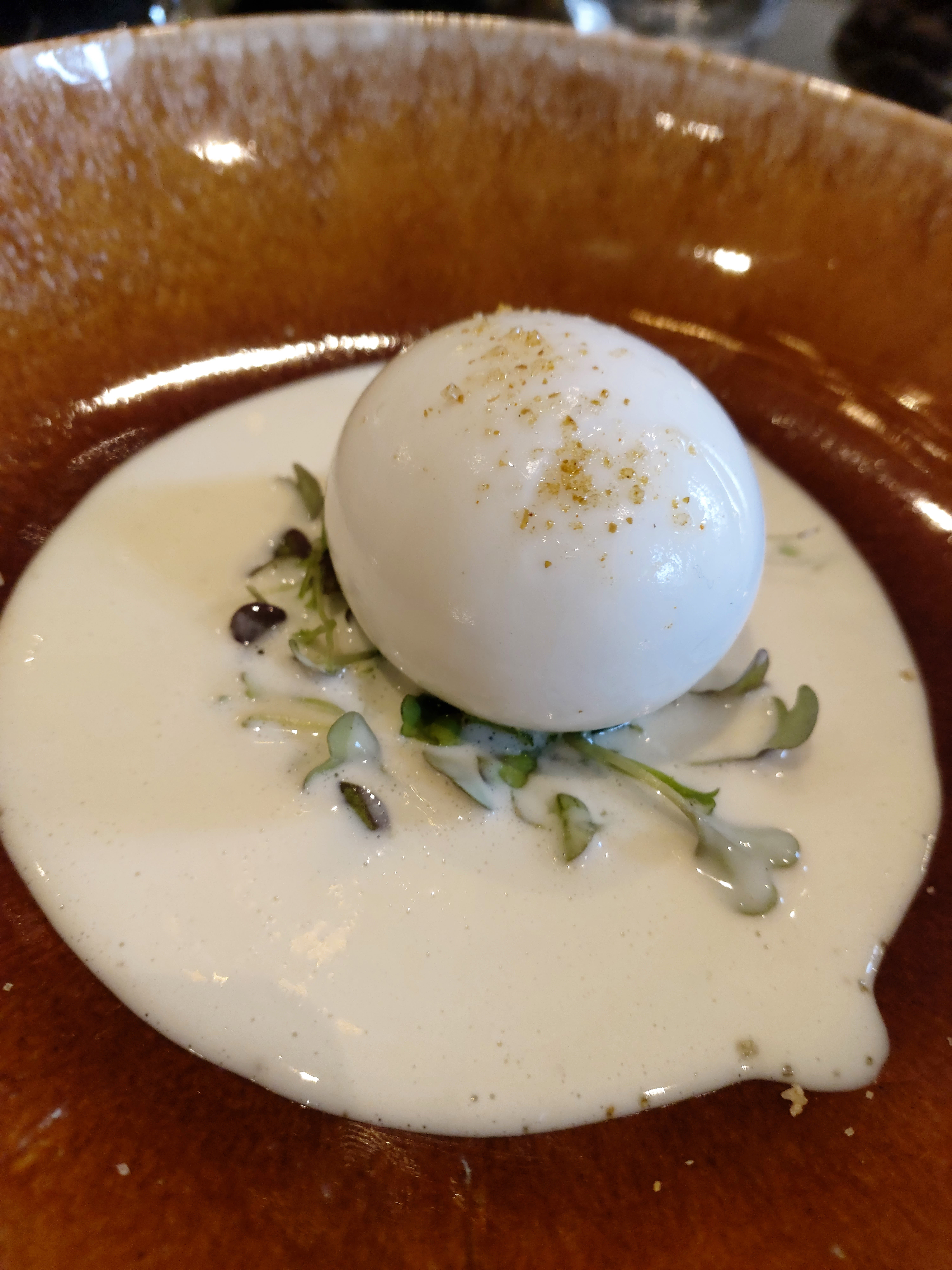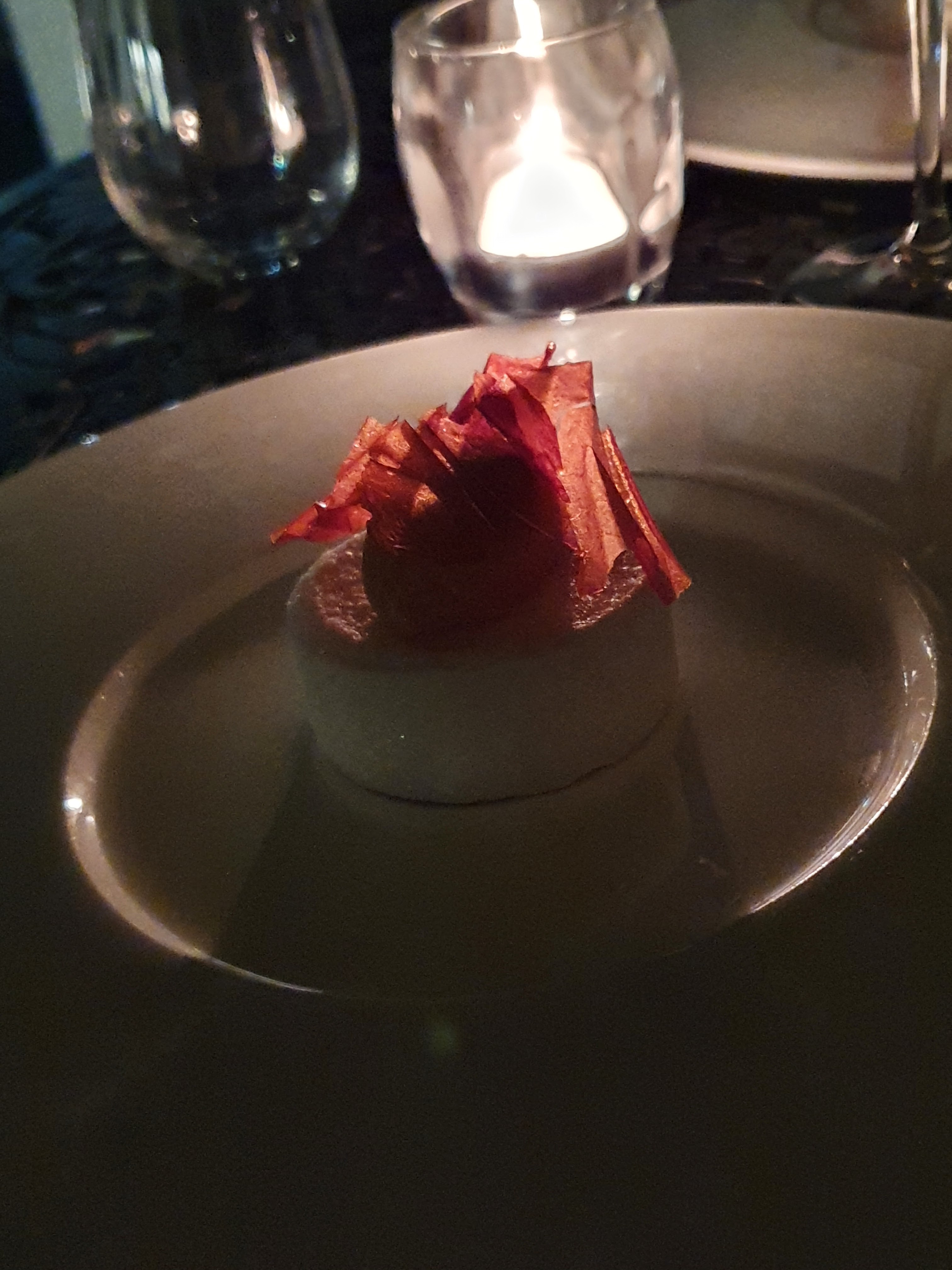 Une expérience culinaire de très grande tenue. Le chef sait prendre le contre-pied, jouant sur le trompe l’oeil et des associations de saveurs audacieuses, avec finesse et subtilité. Un régal ! Vaut largement une étoile.
