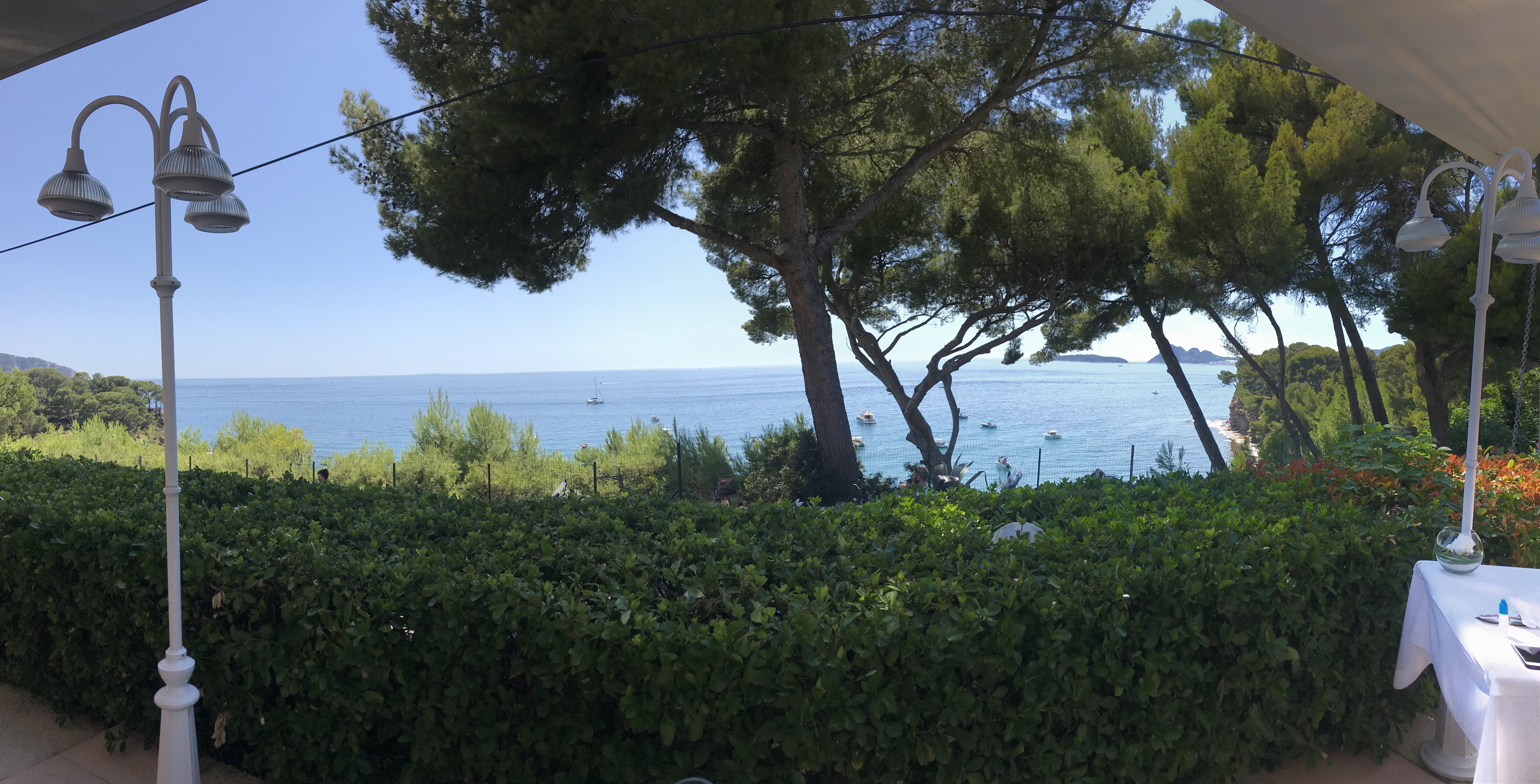 Belle vue sur la mer avec calanque en contrebas. Très bonne cuisine et personnel attentif. Dommage que le parking soit si petit et les plats aient un goût de pas assez vu le prix.