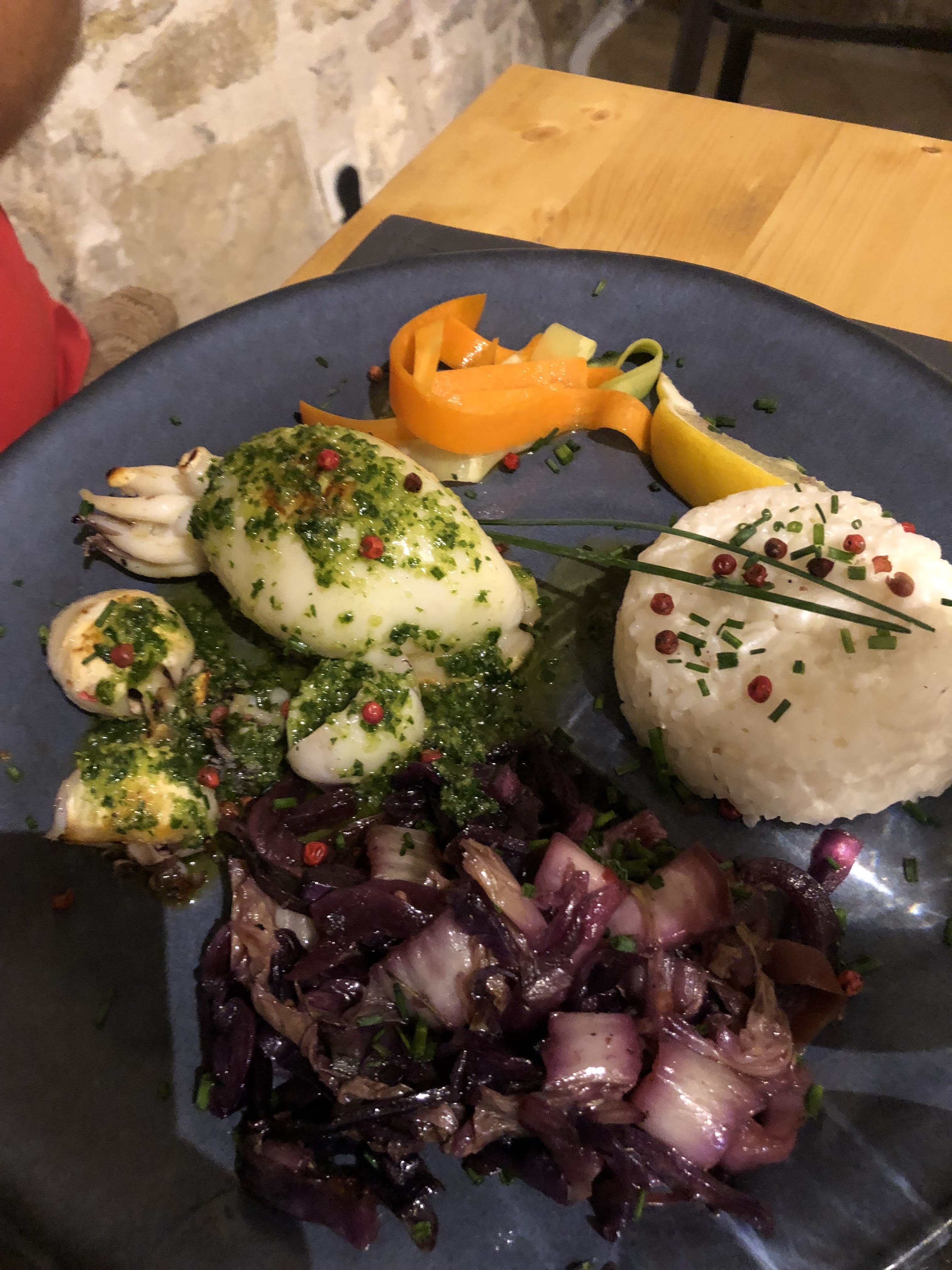 Superbe cadre, un régal dans l'assiette. Les seiches sont merveilleusement bien préparées, c'est frais, travaillé maison et servi avec le sourire et un vrai sens de l'accueil. Que demander de plus !? Une excellente adresse que nous recommandons chaleureusement !