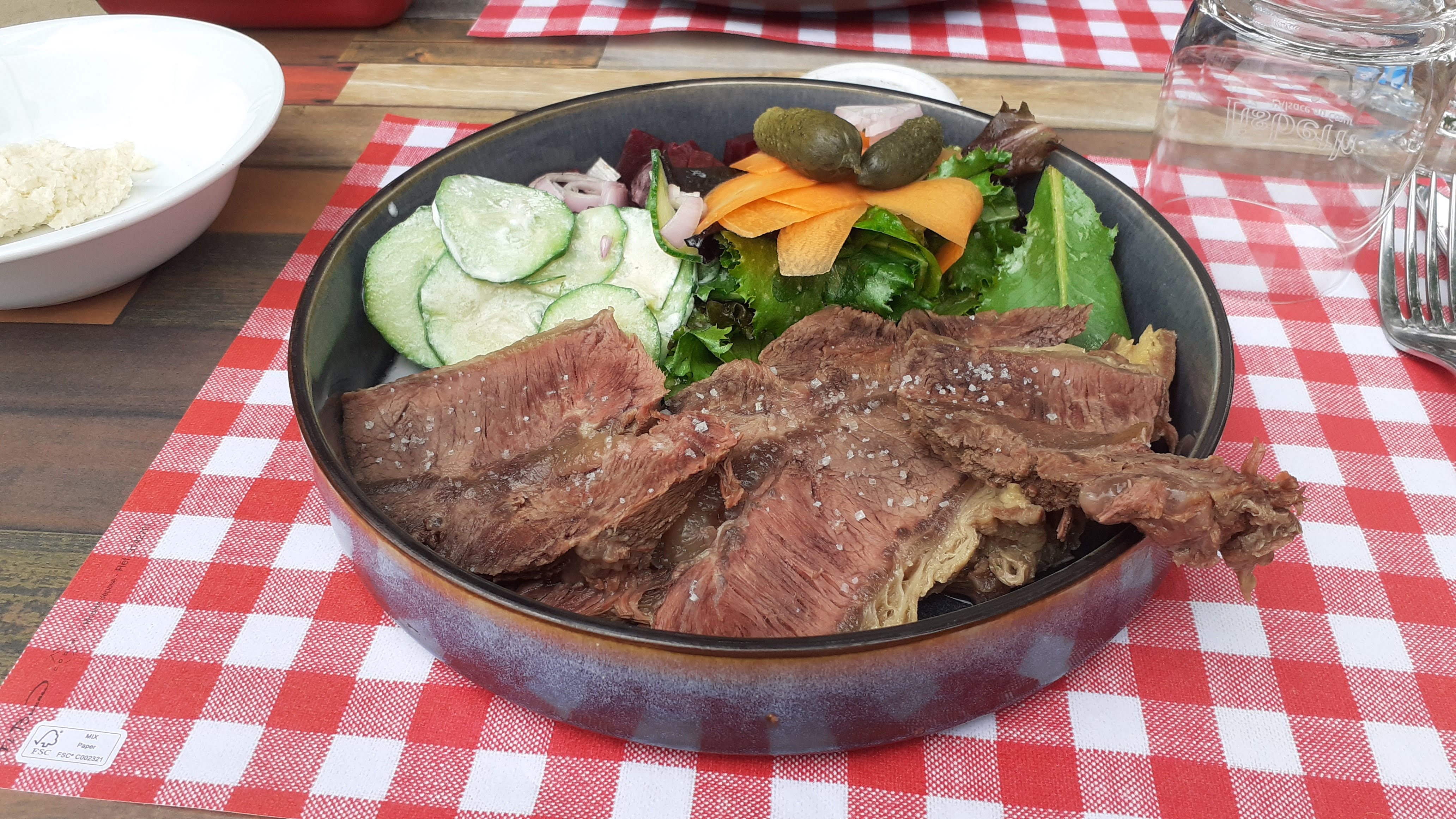 Un coup top,un coup très moyen, l'intention est bonne mais on tombe trop régulièrement sur des erreurs de nonchalance humaine, tartare de saumon coupé trop grossièrement presque écoeurant, viande cordon bleu mal parée et/ou de mauvaise qualité,os à moelle sans moelle du tout,burger de viande effiloché avec de la viande pas du tout effilochée et de très mauvaise qualité. Donc l'intention y est mais il y a un problème dans la réalisation, certaines fois c'est très bien et d'autres fois c'est carrément bâclé. Les tartes flambées sont très bonnes. Photo de la viande effilochée du burger ci jointe.