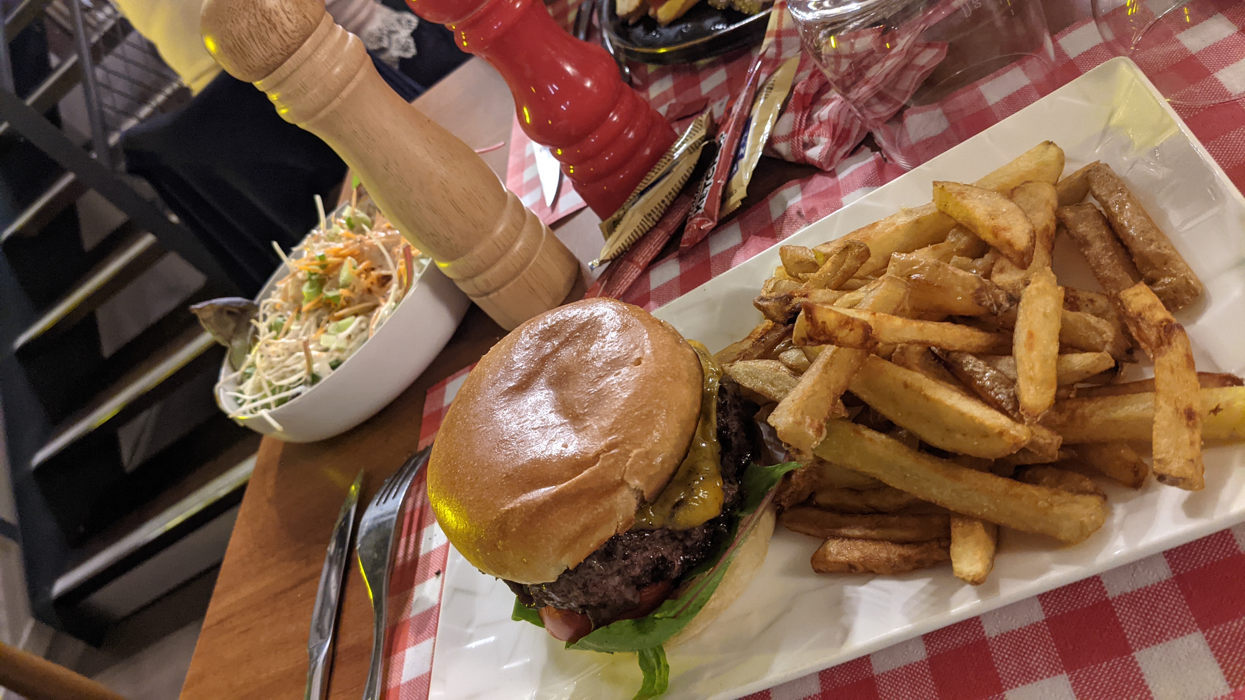 Un service souriant et reactif ! Au top ! Une cuisine comme chez mamie ( ou plutôt papy pour l'occasion ) avec des ingrédients frais et de qualités de la viande aux légumes ! Un VRAI burger à la carte On s'y sent comme à la maison 🙂