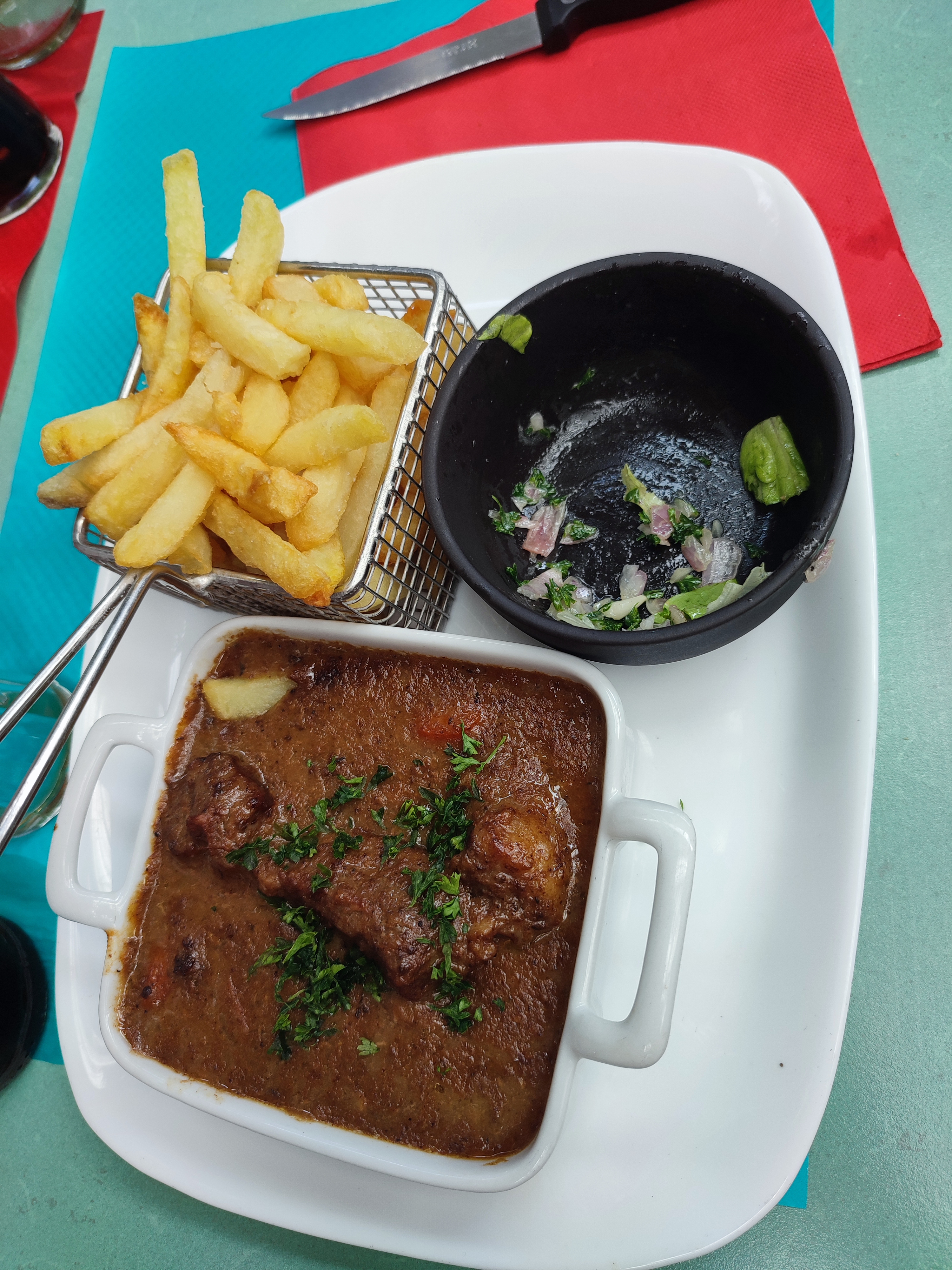 Très décevant pour le prix 28,50 euros Viande dure pour un plat mijoté (carbonade) frites blanches Dessert surgelé