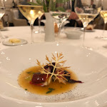 Quel dîner fantastique ! Des plat exceptionnellement créatifs comme la seiche au foie gras, la simple asperge rôtie, la langoustine à la vanille, le pigeon en deux services (exceptionnel) et la tarte aux chocolats. Des vins de grande classe comme on pourraits’h attendre. Et un personnel sympa et pro. Un repas exceptionnel.