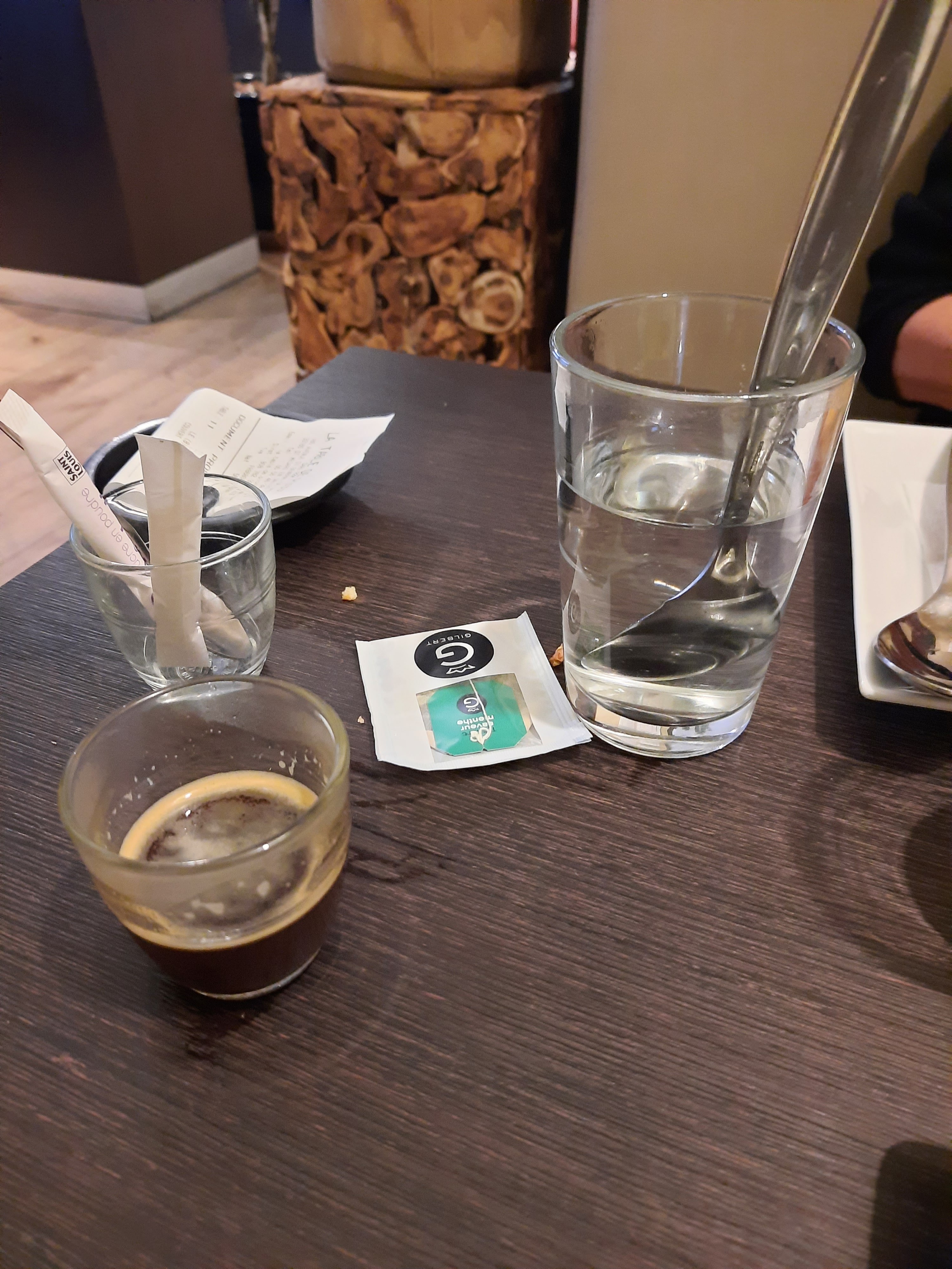 Deuxième essai encore déçu les légumes servi en accompagnement aucun goût les frites trop cuites demander un thé 1 sachet verveine menthe deuxième tilleul menthe signaler au moment du paiement aucune réaction c est définitif nous ne reviendrons plus