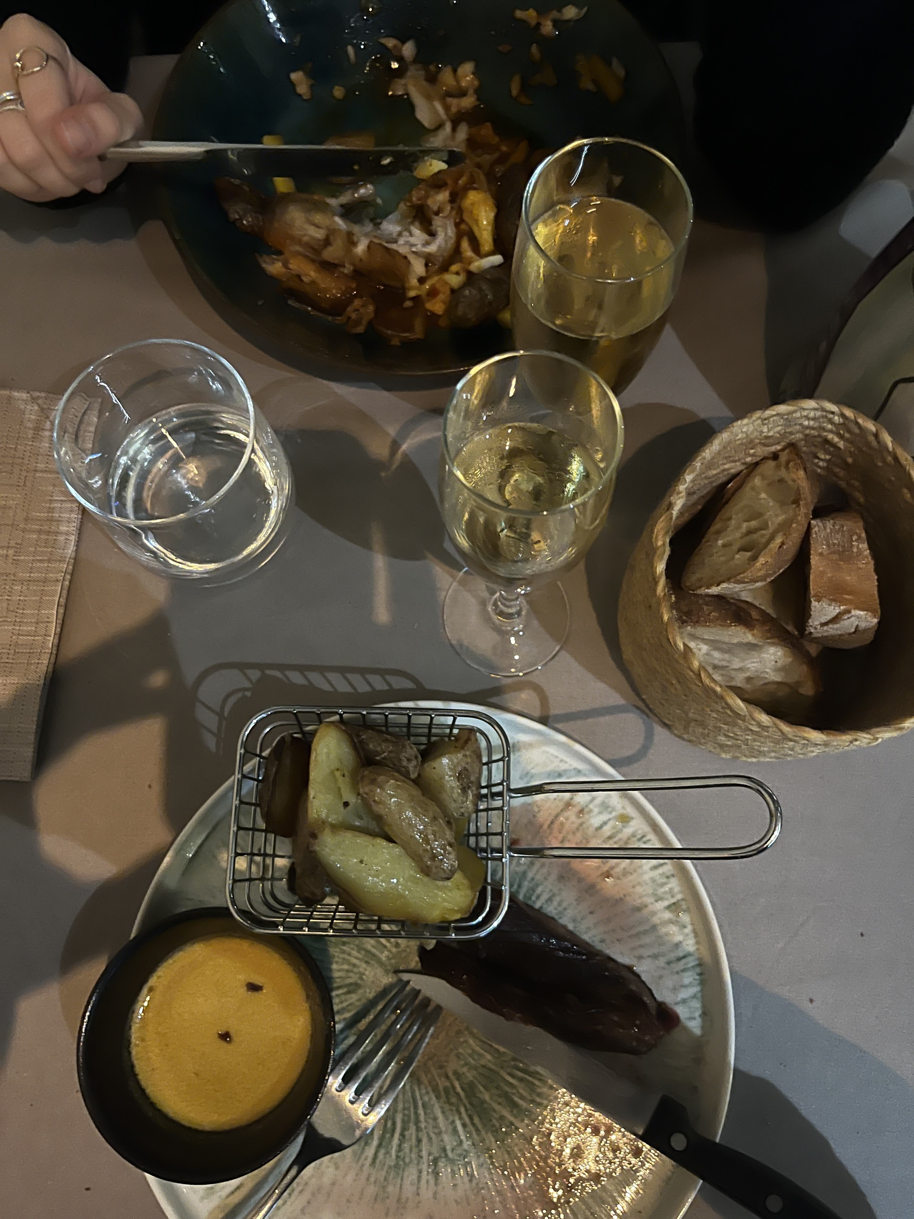 Très sympa comme adresse. Les assiettes étaient bien remplies. Si vous craquez pr les tapas, comptez sur le fait de les partager car ils sont copieux pour les petits estomacs. Il est possible de demander une assiette végétarienne que la cheffe vous concocte avec les produits du jour. Le personnel est agréable et l'ambiance musicale en fin de soirée. Bons choix de vins. Nous avons payé 50 euros par personne à 4 car nous avions pris trois bouteilles de vin.