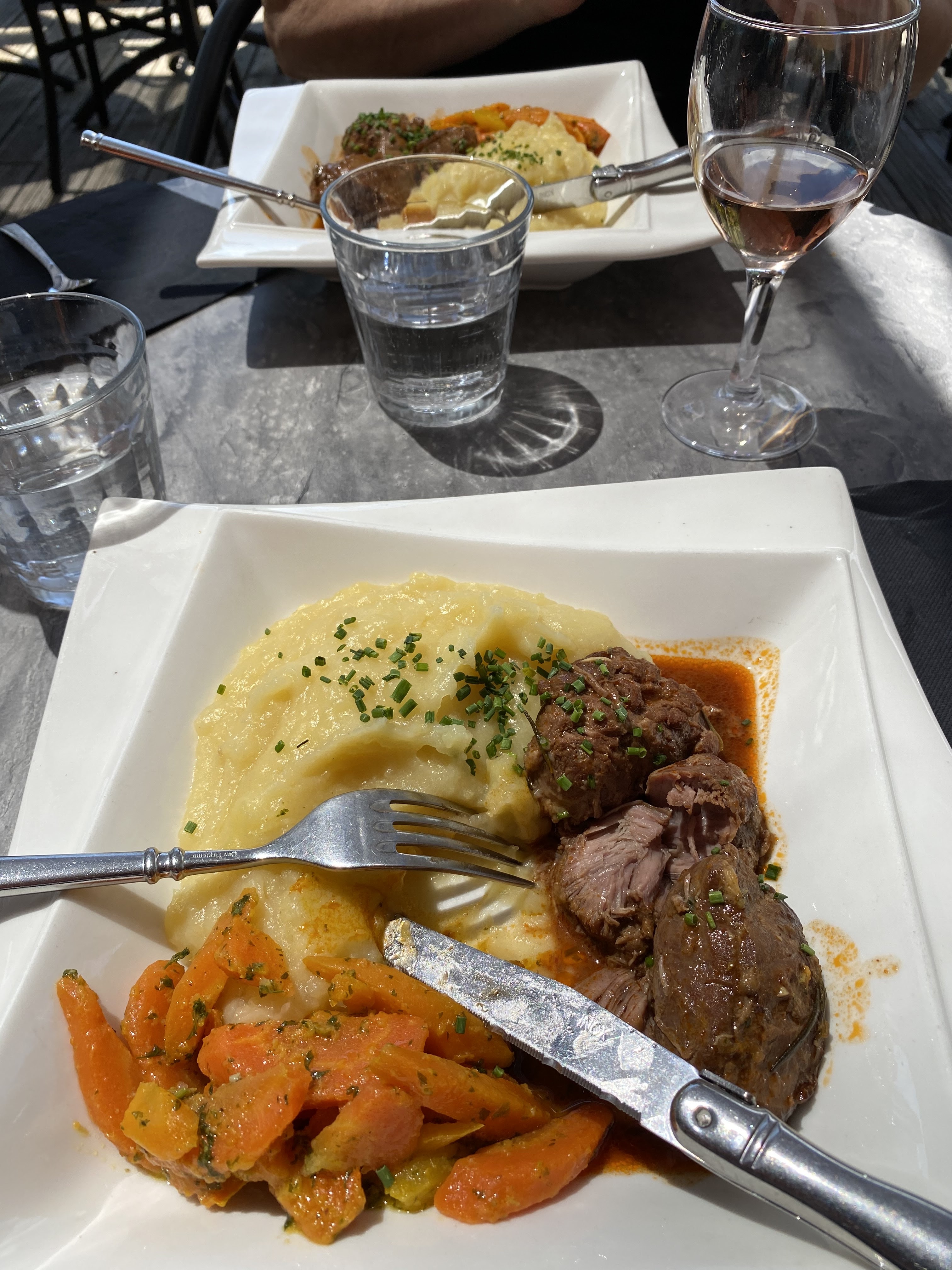 Le repas complet à emporter ce midi était excellent, sublime, nous avons aimé le feuilleté aux pommes sur un.lit de salade fraîche et le boeuf bourguignon était du beurre, les petits légumes sublimes. Bravo