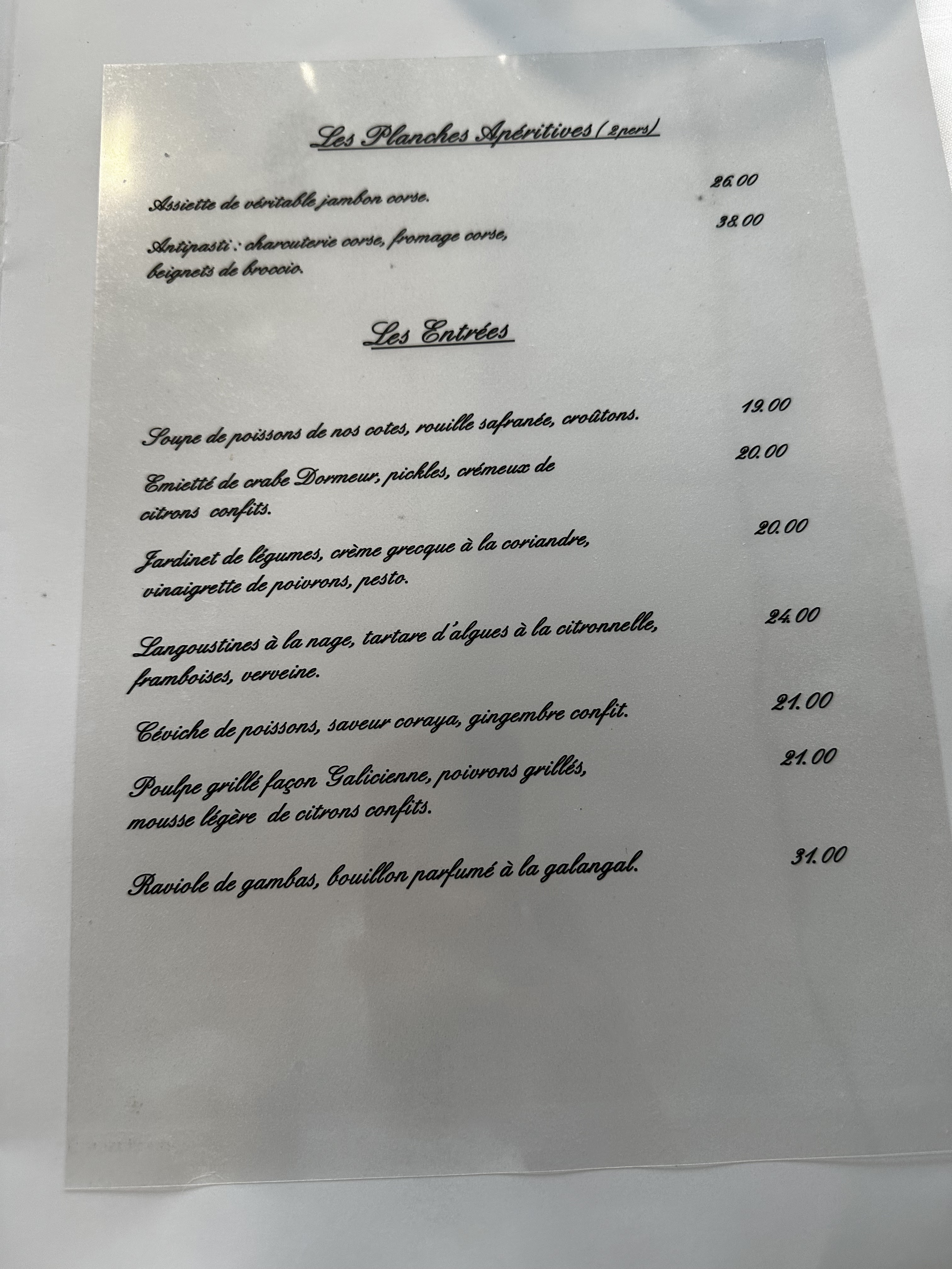 Rien à dire. Tout était parfait du début à la fin. Service top ! Cuisine rafiné et de qualité, produits frais et locaux ! On reviendra ! Merci encore pour ce superbe moment passé sur le port de Calvi