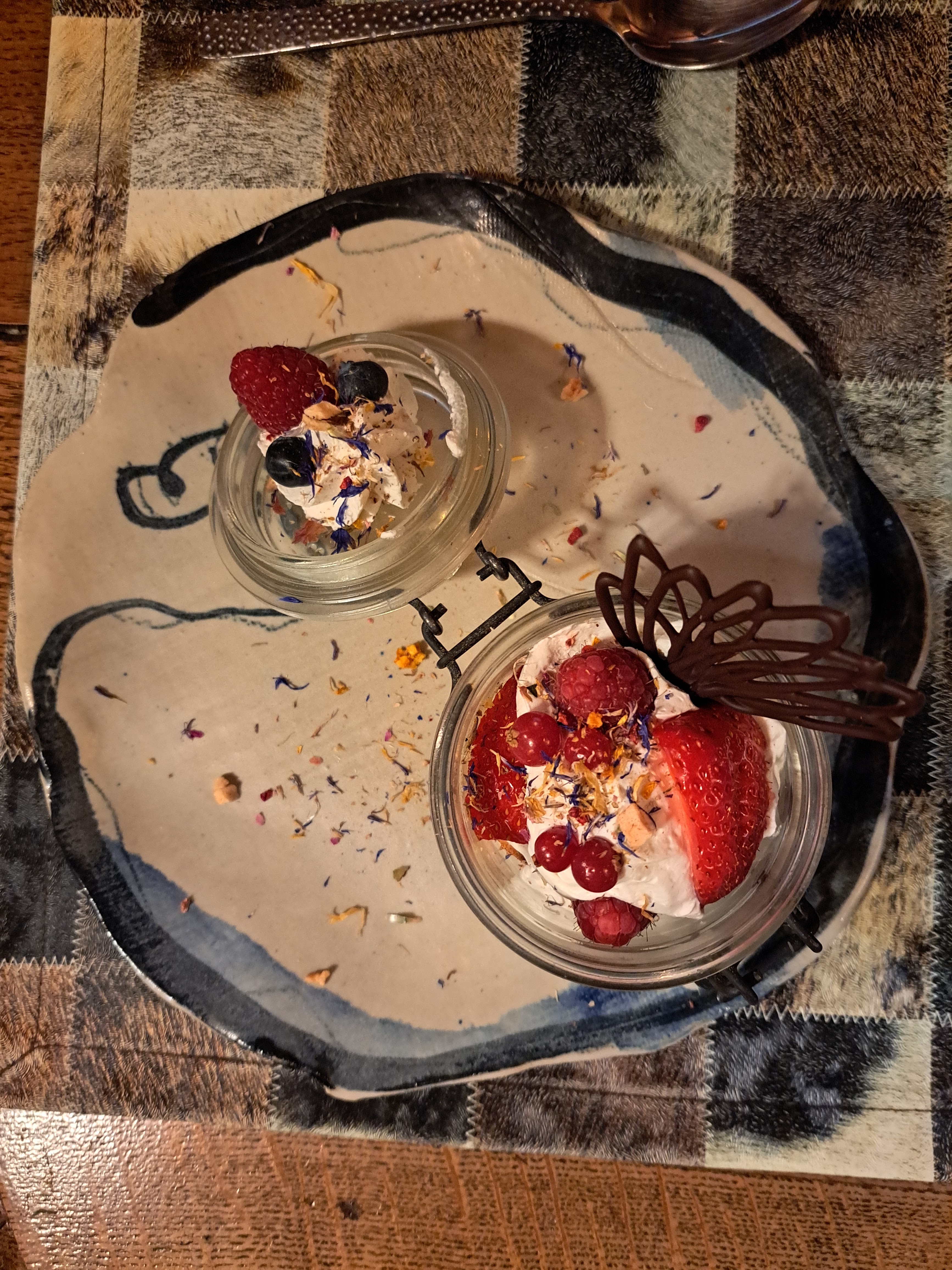 Une bonne raclette et des desserts frais (tiramisu au yaourt avec fruits frais ) et fait maison, lieu bien décoré ! Et bonne génépi ! 👍
