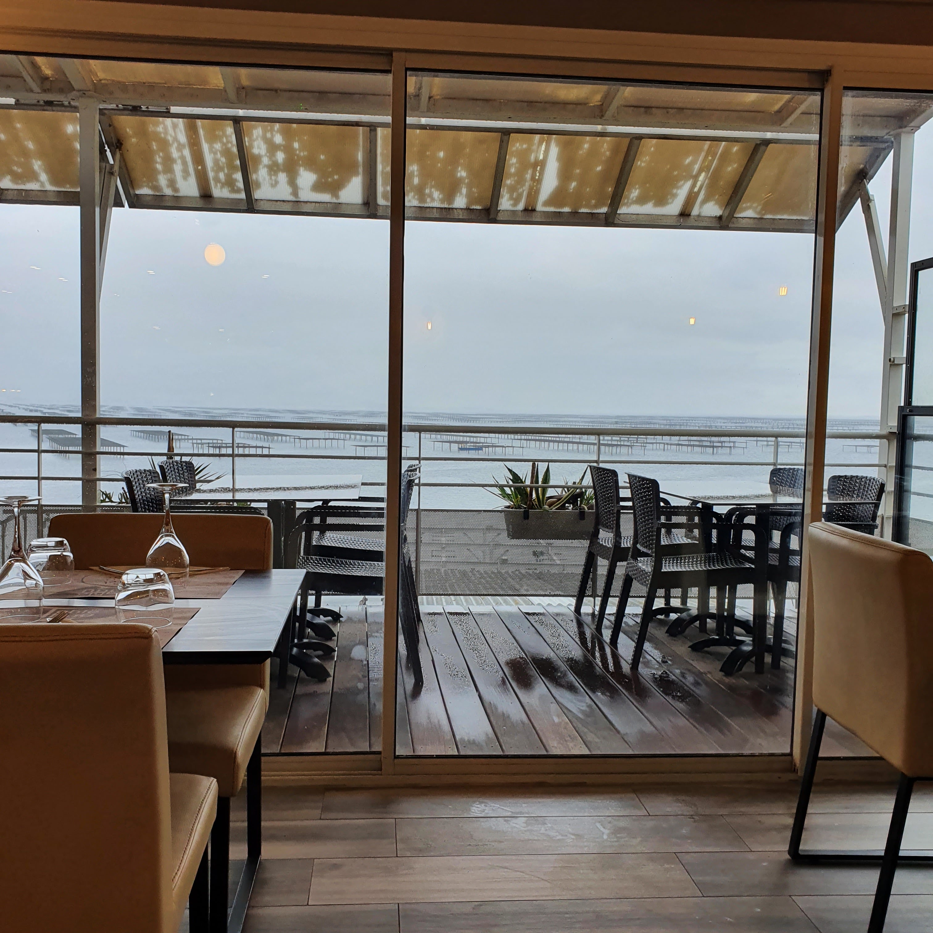 Une table de thau....a la vue imprenable sur les parcs à huitres de l'étang..magique. Les huitres sont tres bonnes. Pour le reste c'est très moyen. Les couteaux plein de sable...la seiche : des lamelles sauce tomate sans saveur...les calamars à la romaine sans goût ( heureusement la roulettes l'aïoli sont la pour relever le goût)
