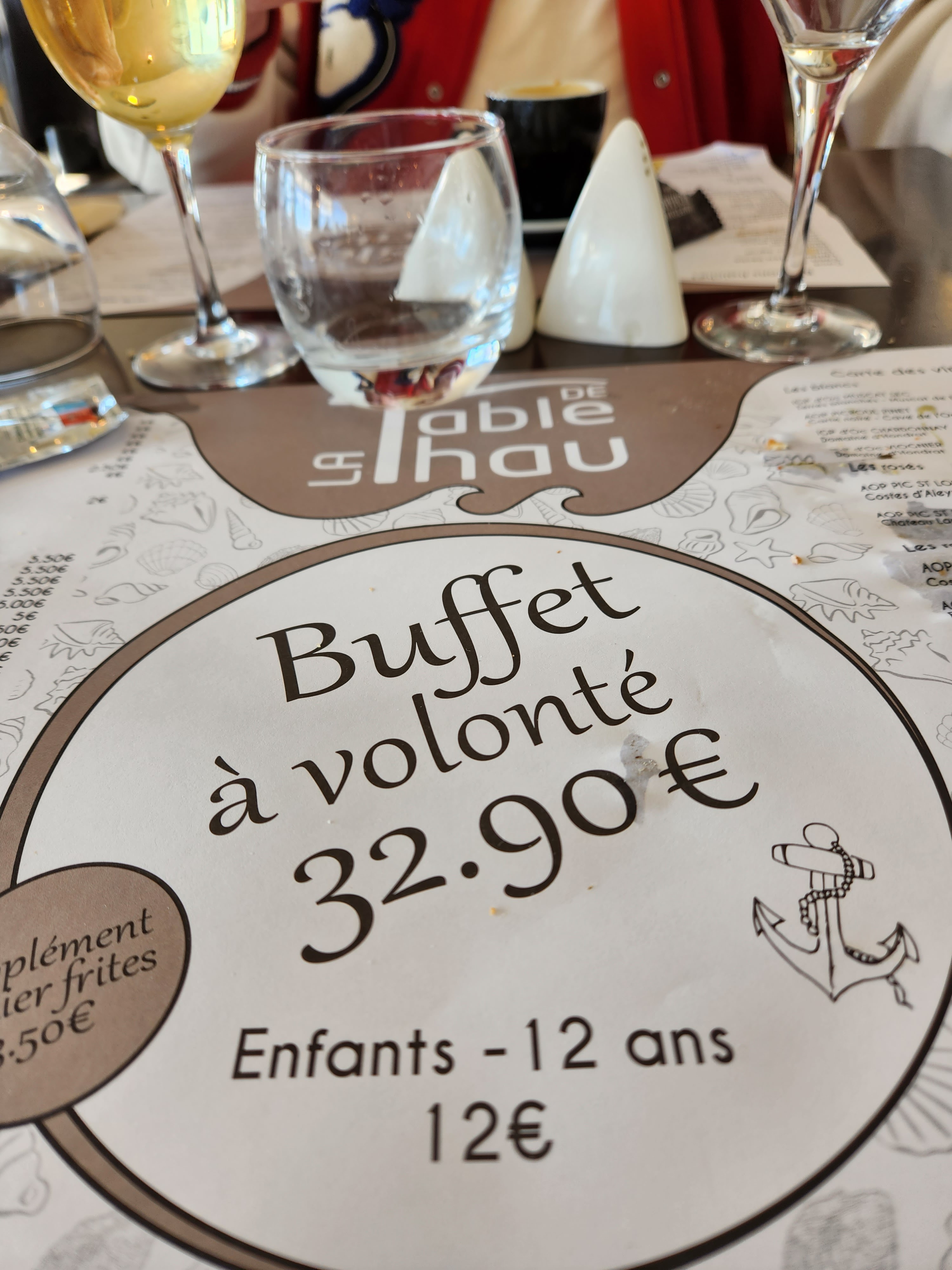 Buffet à volonté à 32,90€, avec le choix la qualité et la quantité, ça vaut largement ce prix. De plus, l'employé qui ouvre les huîtres a fait 6 huîtres spécialement pour mon épouse qui est intolérante au gluten et au lactose. Merci. Si ce n'était pas si loin de l'Alsace on y retournerait bien😁.