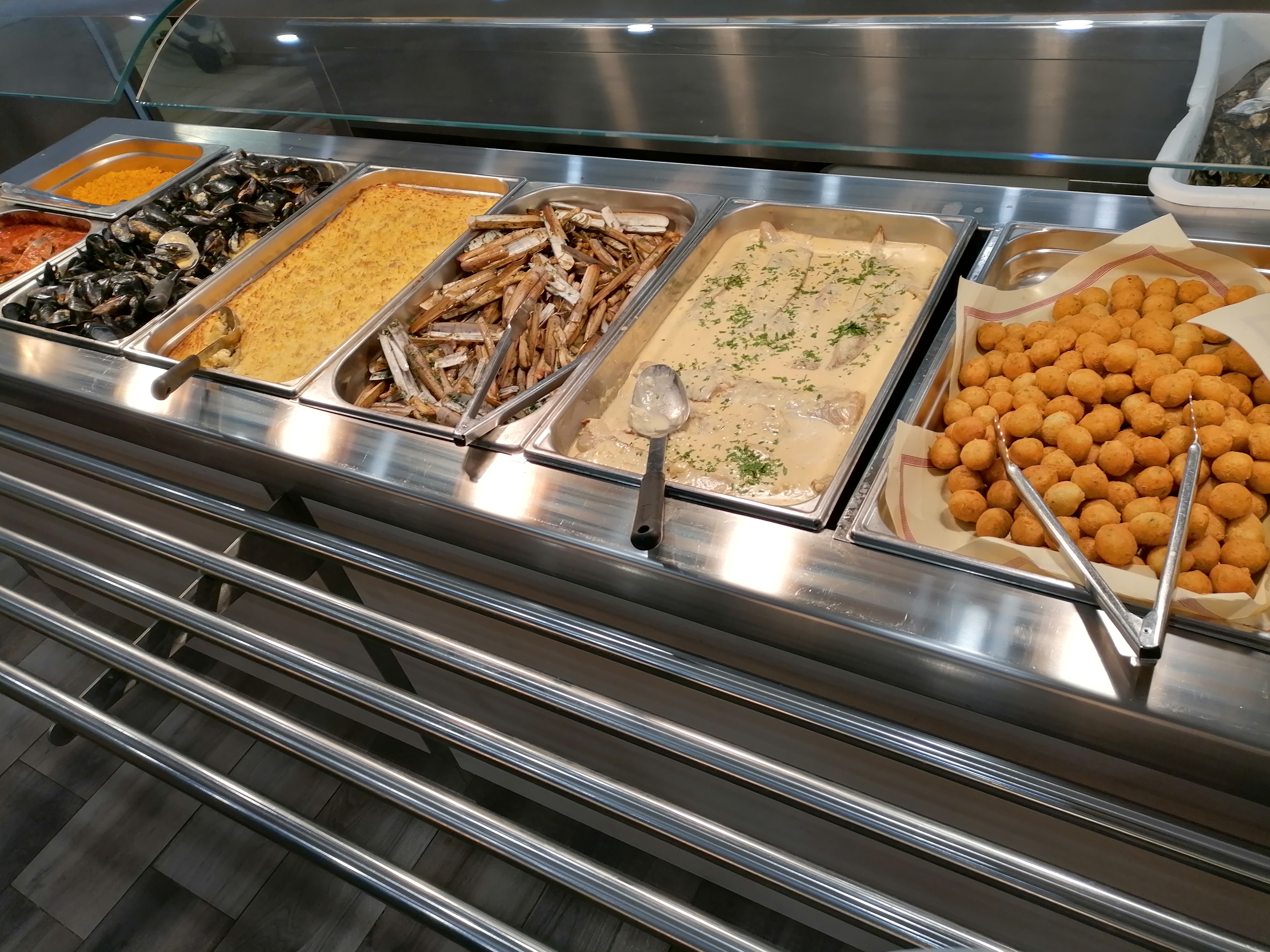 Au prix du buffet les plats mériteraient d être un peu plus raffinés Les moules gratinées n en non plus que le nom car trop manipulées par les clients ,les couteaux sont des coquilles vides!! Les autres plats restent corrects sans plus. On s'attendait à mieux Par contre service agréable