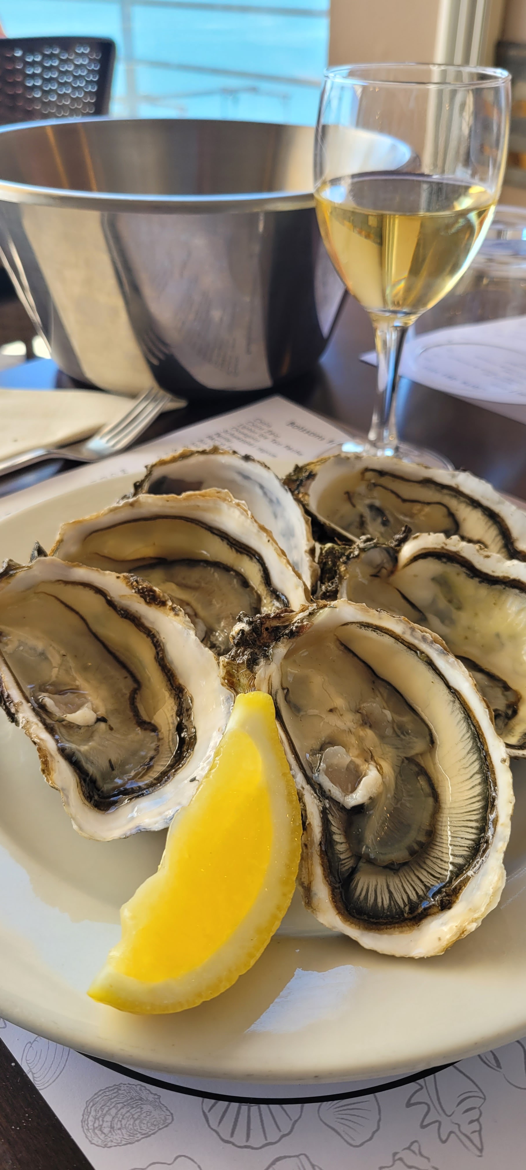 Nourriture topissime, fait maison. Service très attentionné et ça fait plaisir ! Magnifique vue sur les parcs à huîtres. Nous avons passé une superbe soirée !