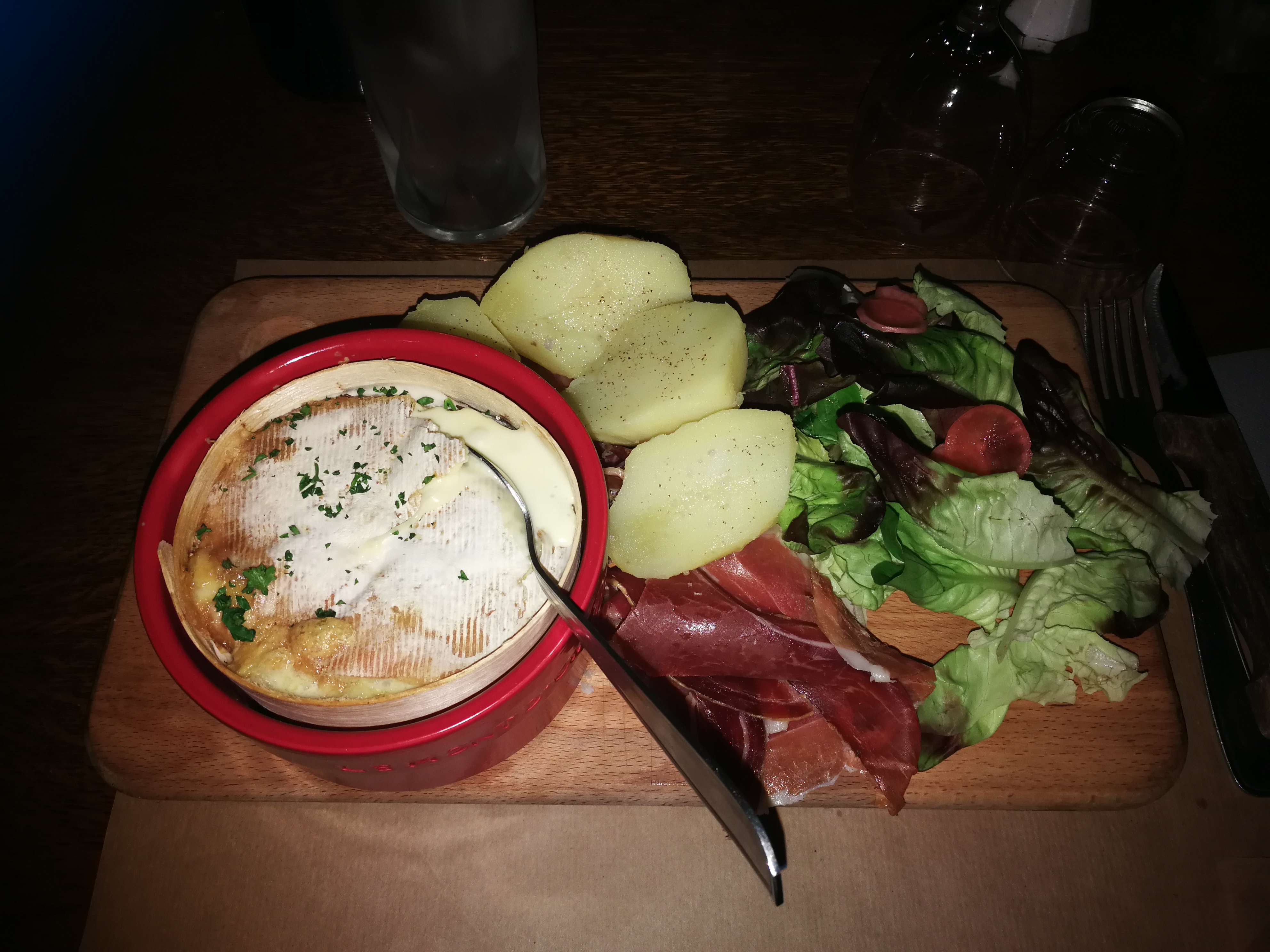 Soirée Tapas ! J ai pas bien compris le concept... de ce piège à touristes ! Rien nbest frais rien nbest cuisiné maison.. aucune saveur au fromage un camembert Coeur de Lion au four !!!! Et un demi moelleu au chocolat ! Bel plaisanterie