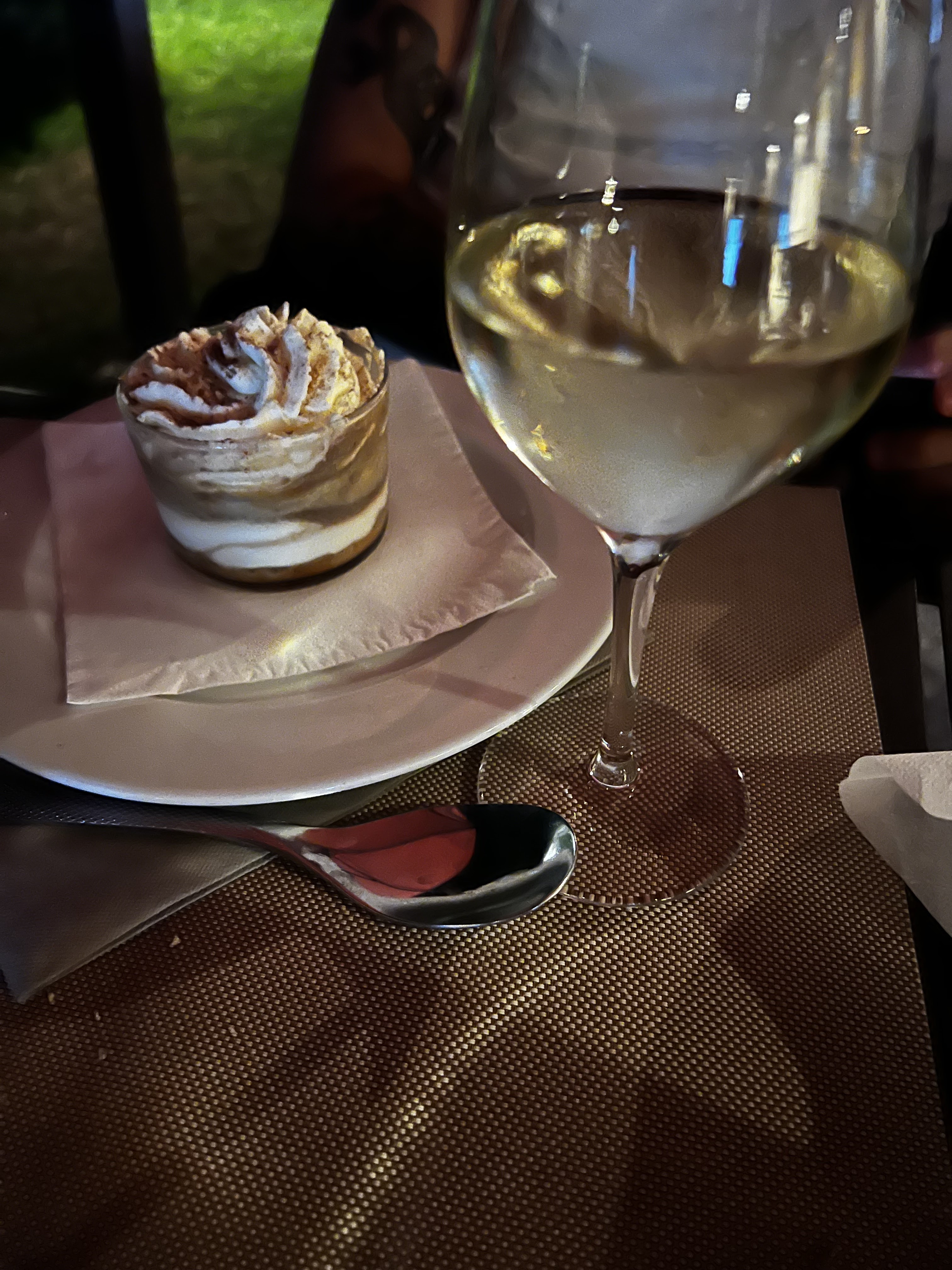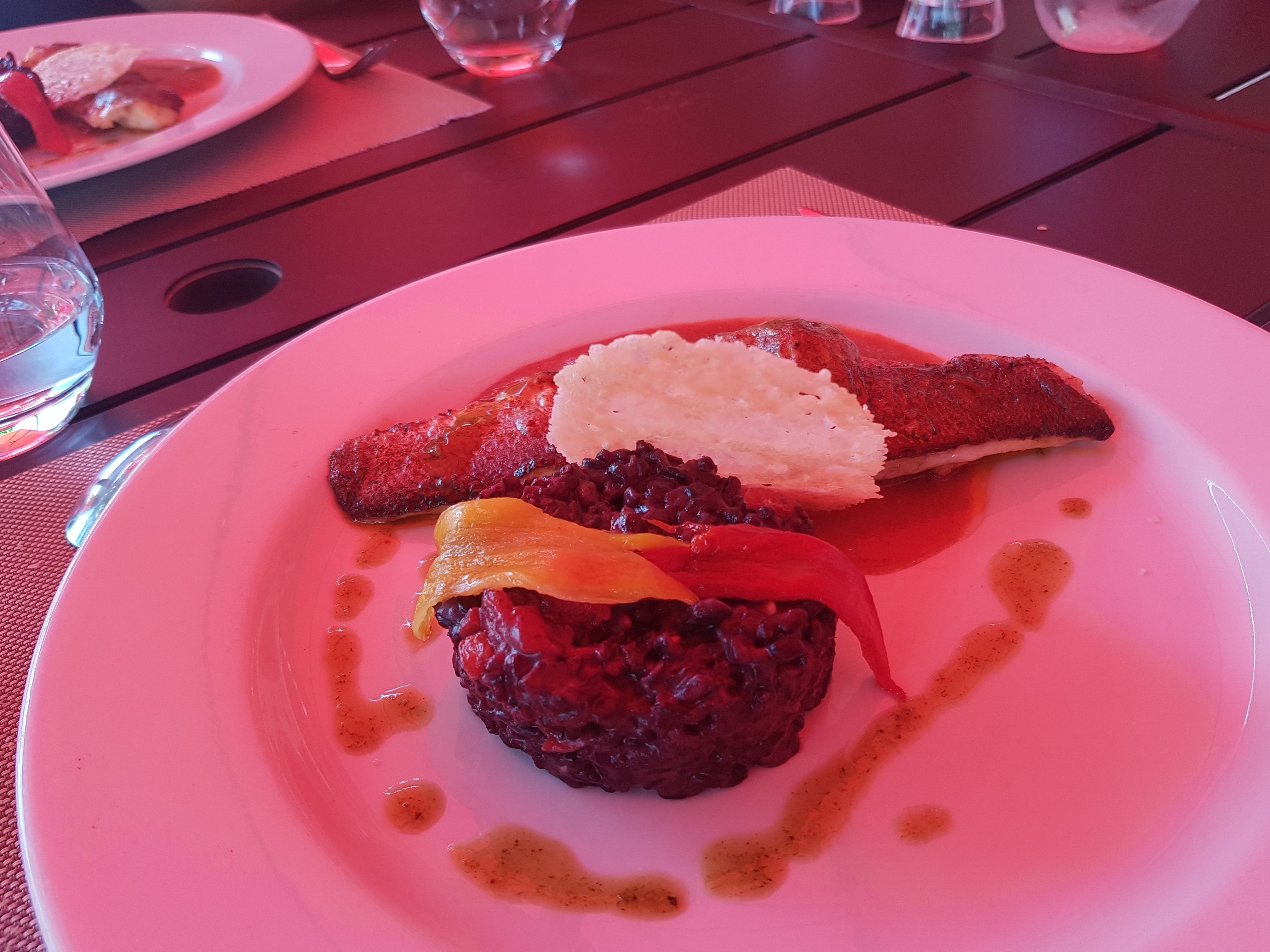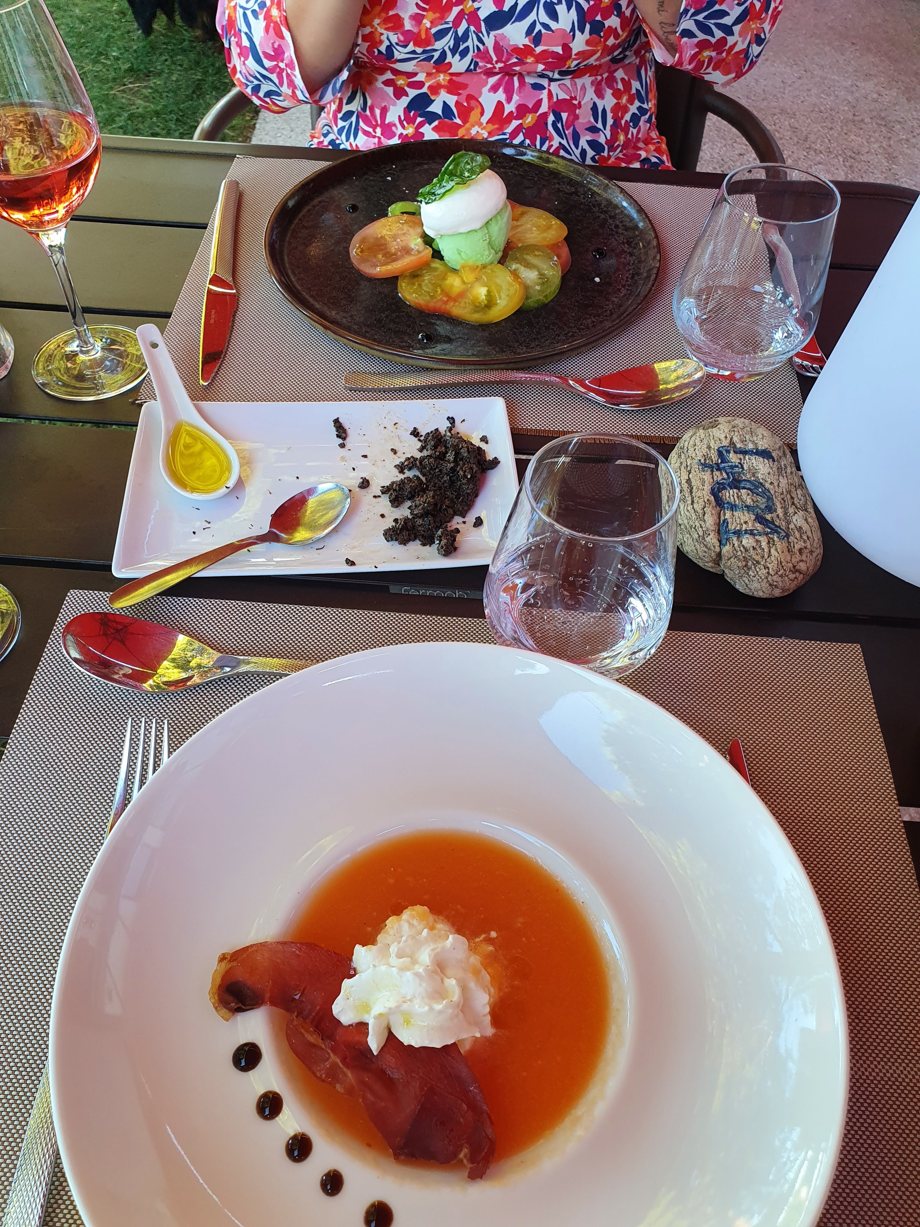 Parfait... cadre très agréable loin de la foule.... Serveurs et personnels très gentils et à votre écoute Plats bons frais légers.. Vins du domaine.. Une belle soirée ou l on se sent privilégié et chanceux de vivre dans une si belle région merci