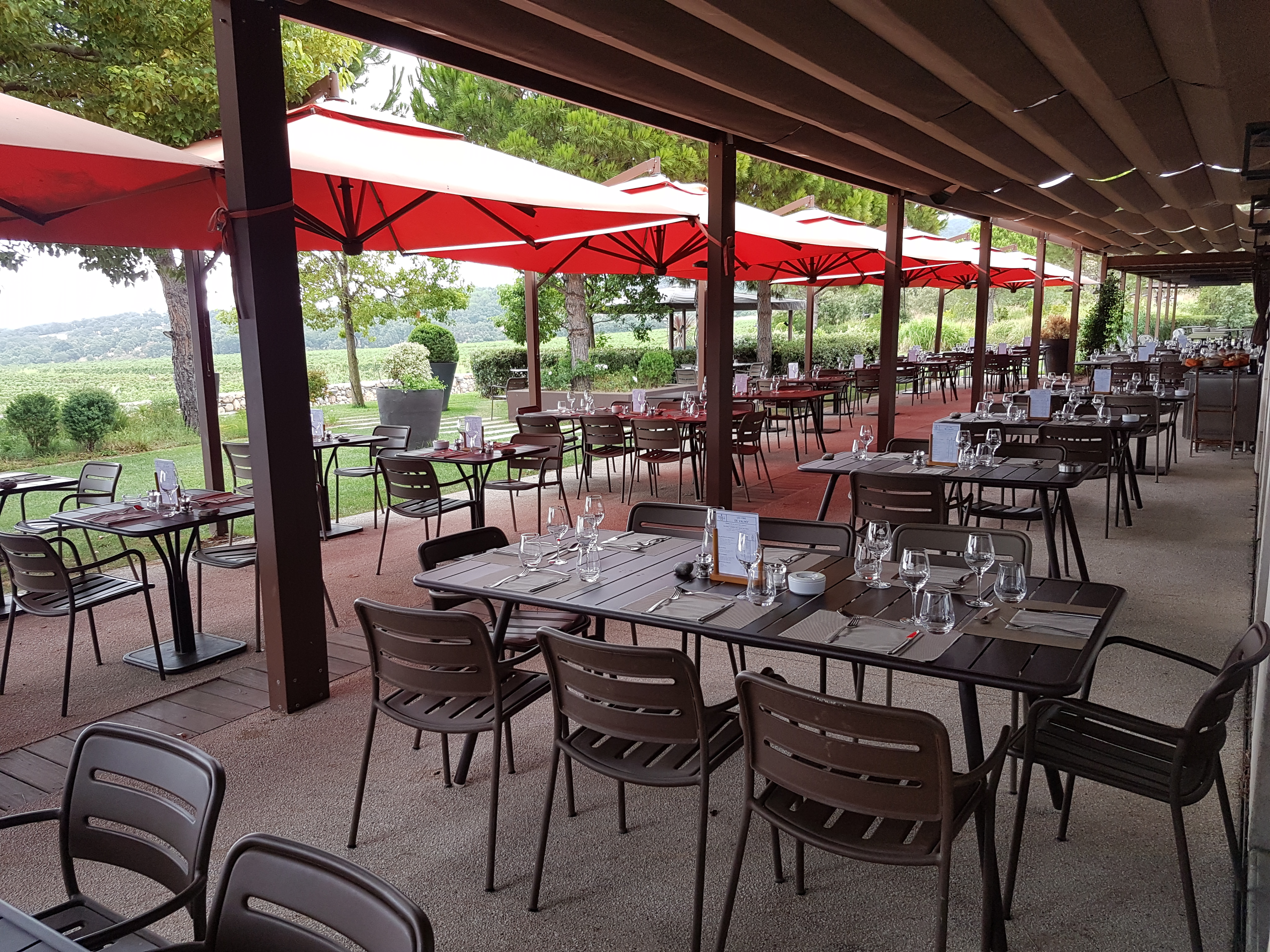 Très beau décor ( sur les vignes) et repas de bonne qualité et de bonne présentation. Accueil et service corrects. Petit bémol sur le nombre de personnes qui ne permet pas le côté cosy du restaurant... ça ressemble à une restauration de chaîne. La tenue des serveurs dépareillée est à revoir pour une table de qualité. Compte tenu du rapport qualité/prix : 3* soit 13/20