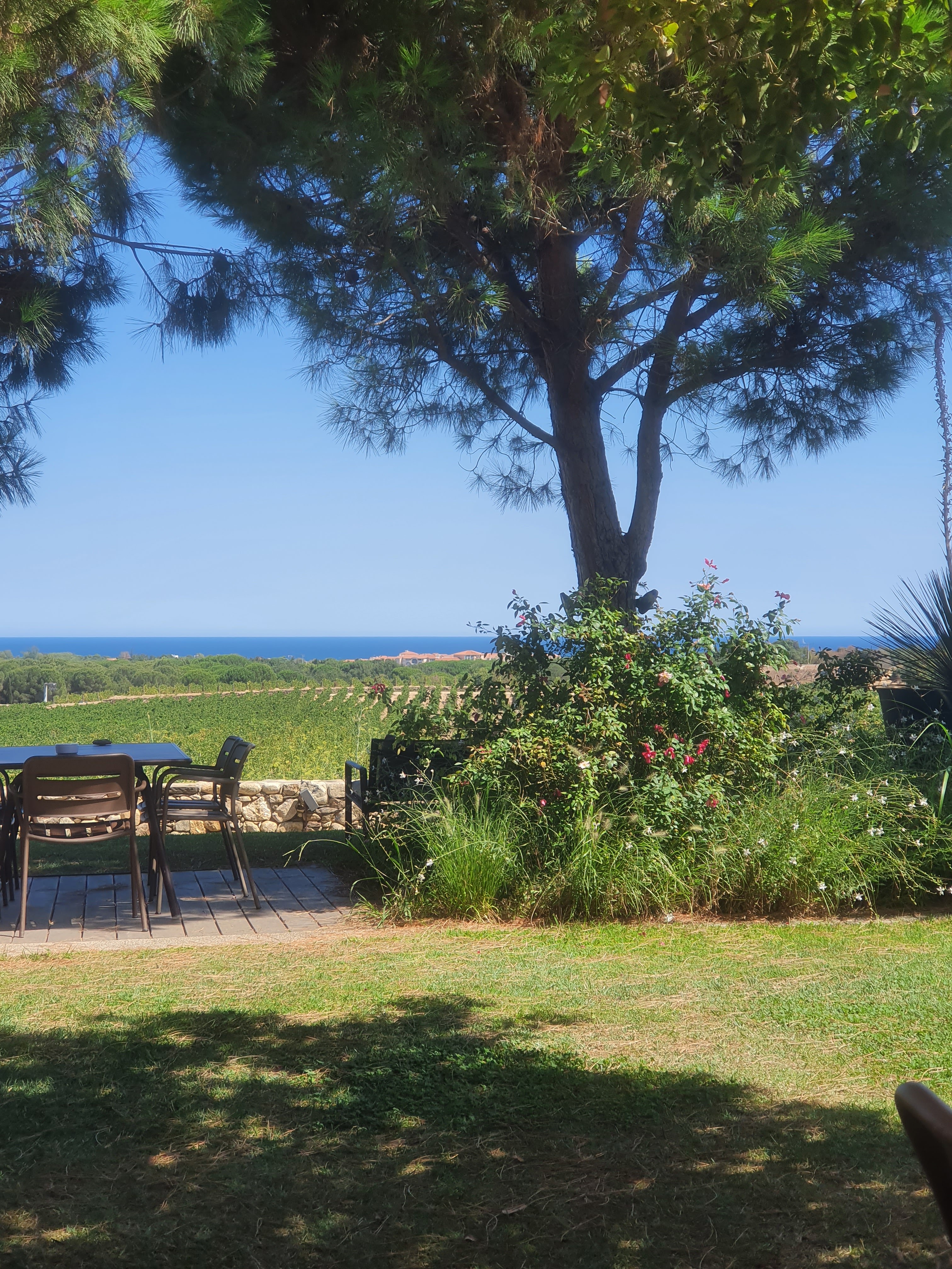 Excellent repas dans un cadre magnifique.... service impeccable, discret et attentionné.... sans avoir prévenu, juste en échangeant quelques mots, des bougies sur notre dessert pour notre anniversaire de mariage... la terrasse ombragée, la mer comme carte postale au delà des vignes.... des vins du domaine et un pétillant digne des Champagne... merci pour ce doux moment...