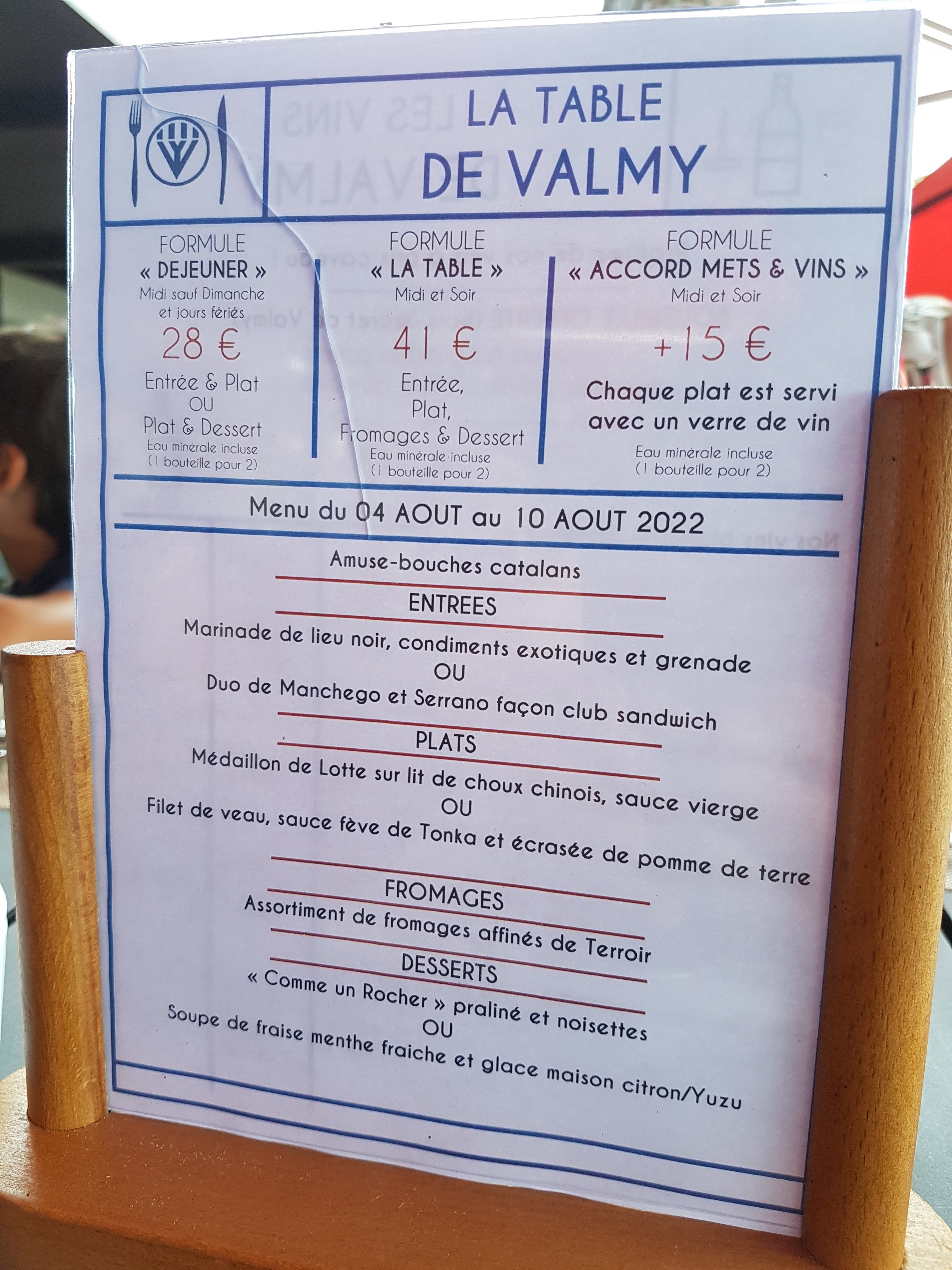 Tout les ans nous allons à la table de Valmy ! Un régale à chaque fois, avec possibilité de profiter de la dégustation du vin du domaine ! Une vue imprenable ! Petit bémol : service parfois trop rapide … et à quand le paiement en chèques vacances ? Je recommande +++++