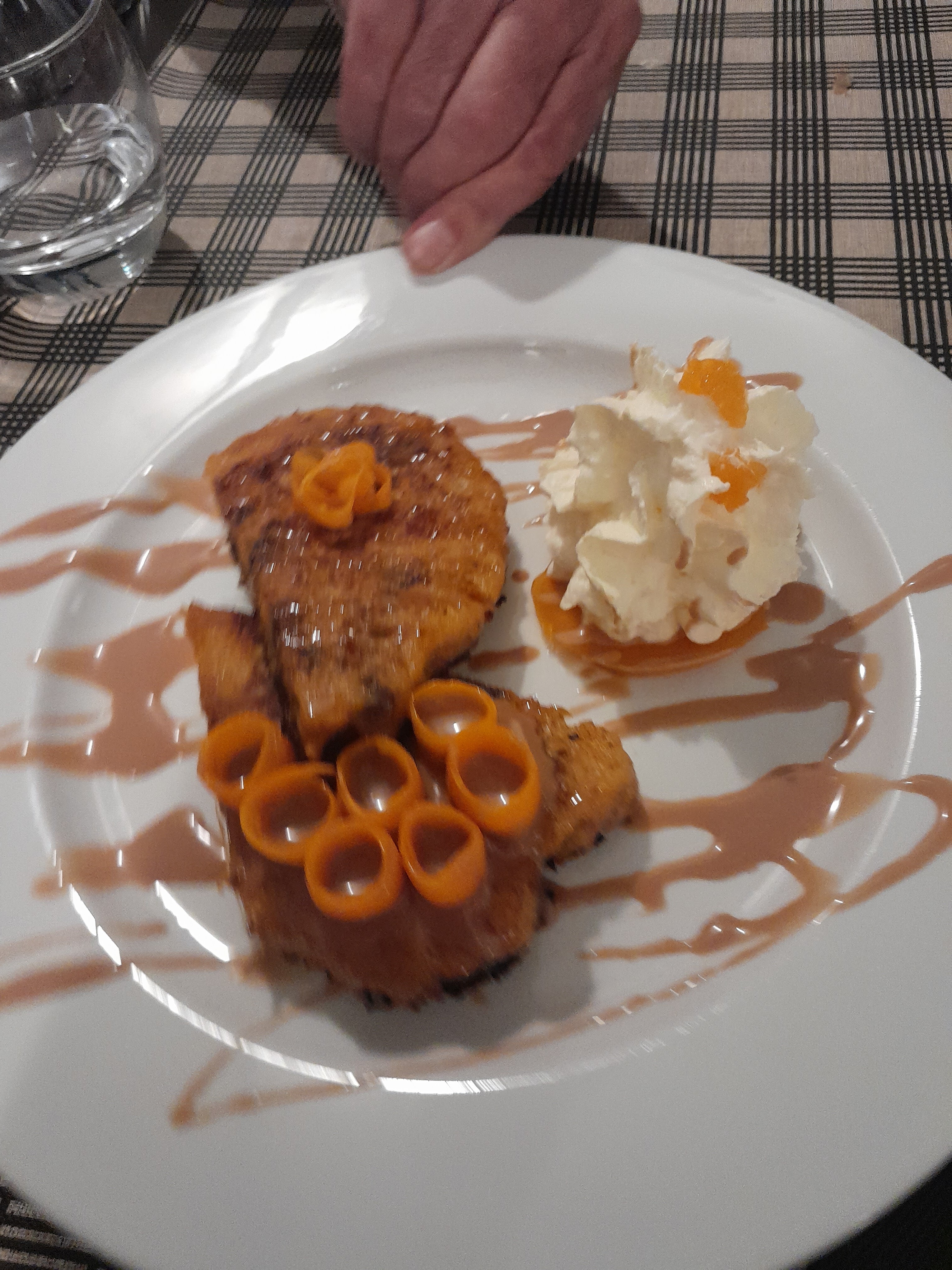 Ça a Était un repas improvisé et. superbe carte avec ses croustis de magret et sa mique revisité au désert