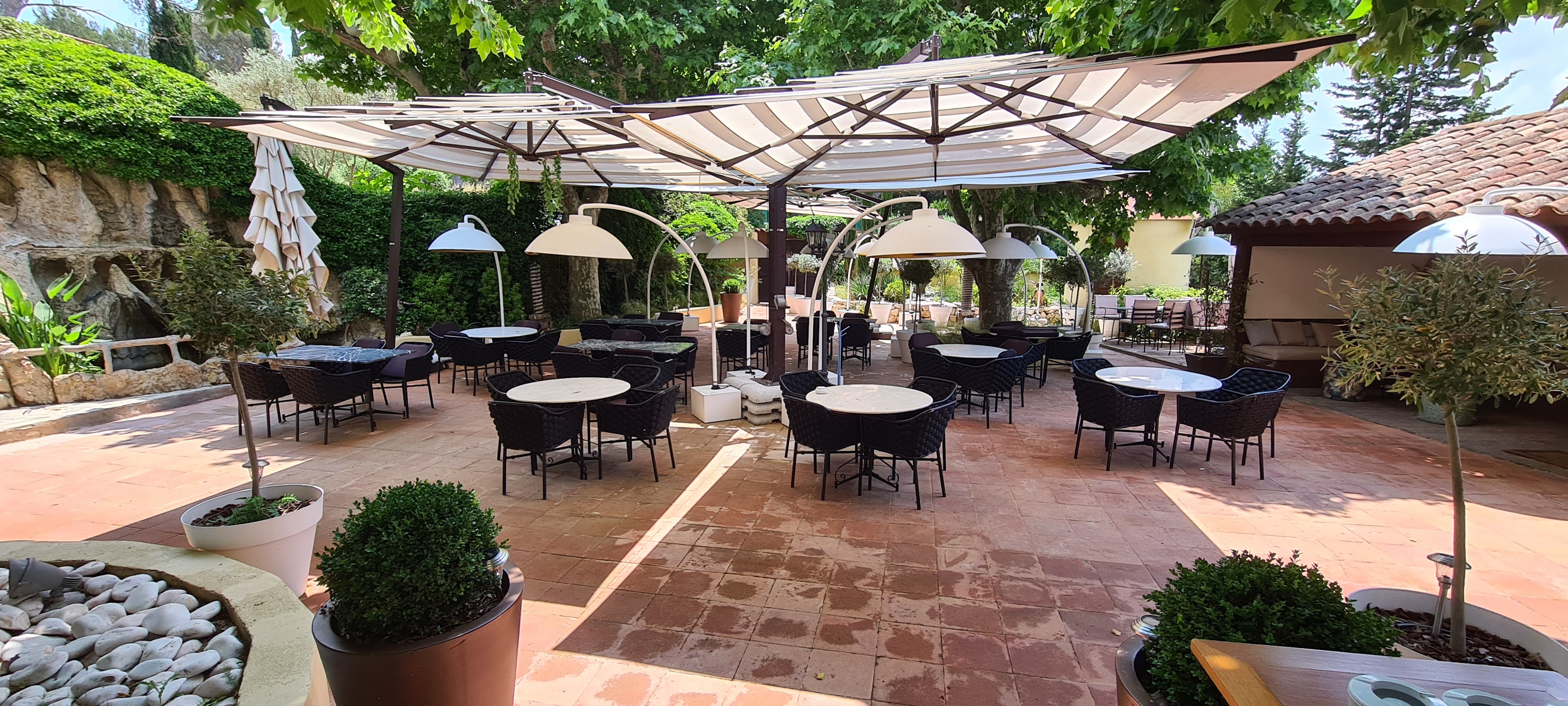 Bon accueil Restaurant au calme Grande terrasse ombragée Excellents plats et dessert Service impeccable Parfait pour un repas d'affaires ou un rdv galant