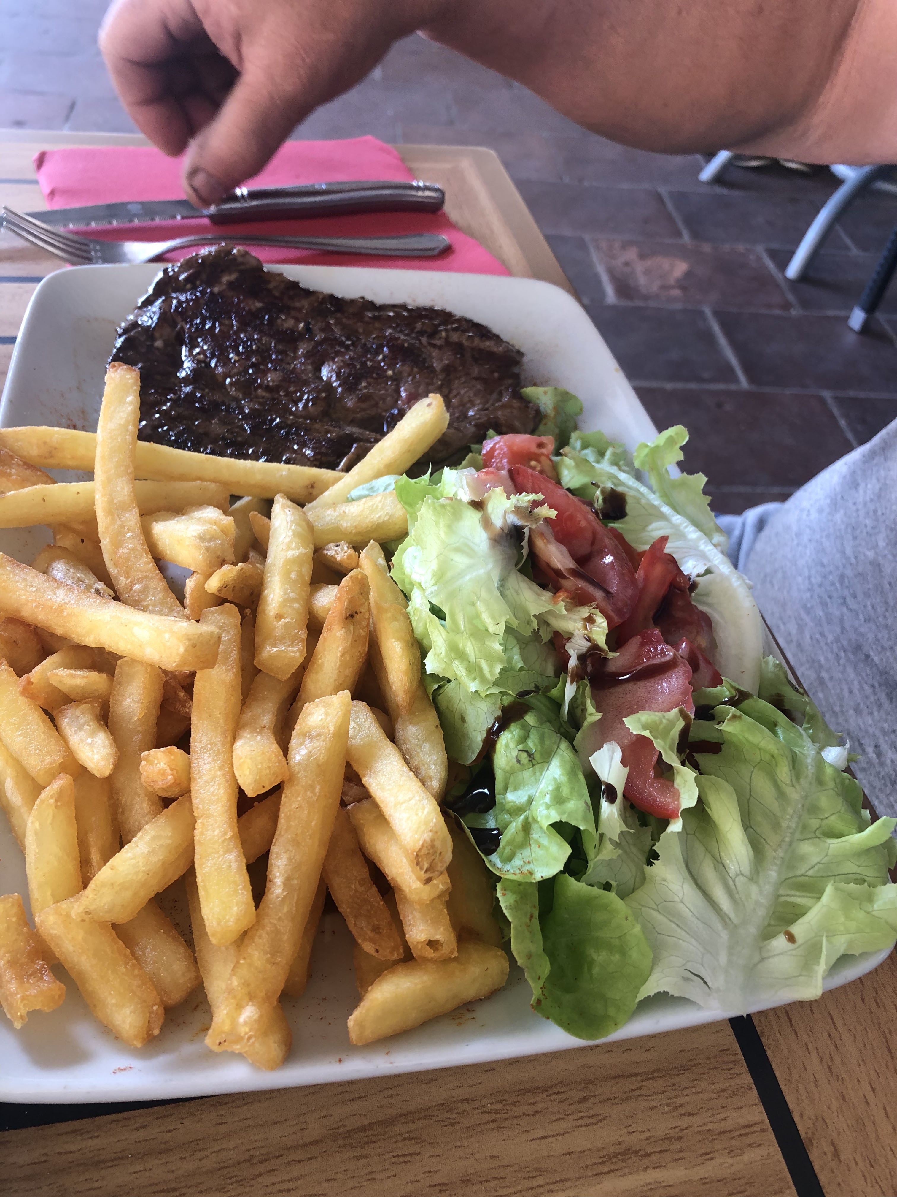 Bonne cuisine, simple mais efficace, malgré manque d'assaisonnement qui malheureusement est difficile de rectifier à table étant donné que le sel ne coule que très peu. A mon sens une belle viande de qualité mérite au minimum un bon sel de Guérande, au mieux une fleur de sel. Les bouteilles en plastique quand on paie les plats 18/19 euros c'est limite et la mayonnaise qui arrive en gros tube comme au kebab du coin... Un petit pot, une sous tasse ça ne coûte pas grand chose et ça fait toute la différence. Le pastis était sec, trop peu de pomme et la compote industrielle à côté, sans intérêt. Le service est sympathique, malgré tout. C'est dommage, le lieu est beau et les produits sont qualitatifs, votre personnel est plein de bonne volonté cependant vous pratiquez des prix qui sont élevés tout offrant une prestation qui s'apparente à celui d'une brasserie avec un menu entrée plat dessert à 20 euros.