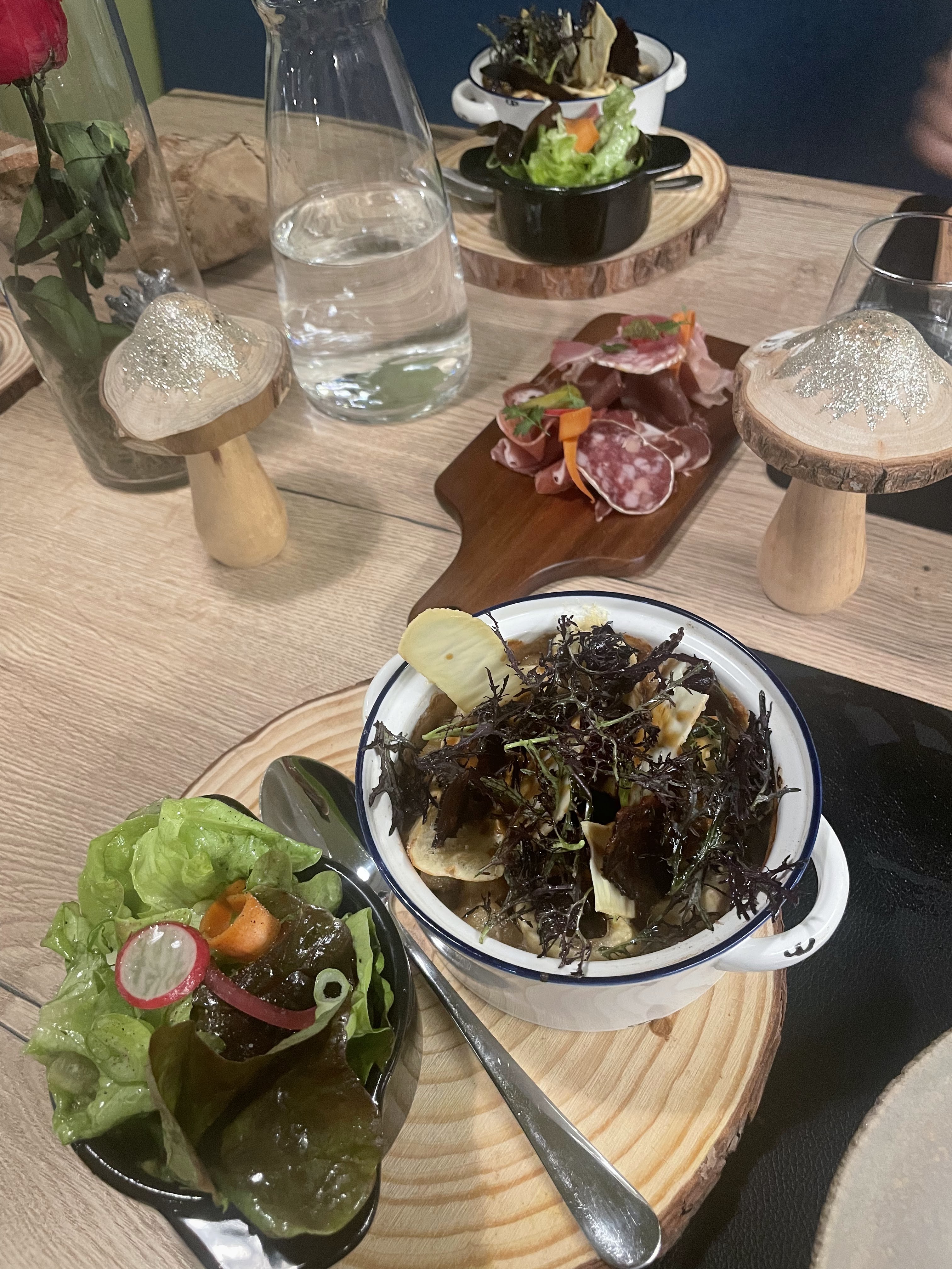 En complément de ma note : Rien à redire sur le repas, l’ambiance est cosy et chaleureuse. Par contre nous avons passé une soirée hyper pénible à cause du serveur qui courrait Je n’exagère pas !!!! Il courrait pour servir. Il courrait pour ce déplacer dans le restaurant Apprenez lui a avoir le pas léger et à ce déplacer en marchant parce que c’est insupportable. Je ne lui est rien dis parce que je ne voulais pas en faire cas devant tout le monde mais ça nous a clairement tous agacé. Et qu’il ce tchek parce que les odeurs de transpiration forte quand on sert les clients c’est pas possible. Attention il était malgré sa très serviable et poli.