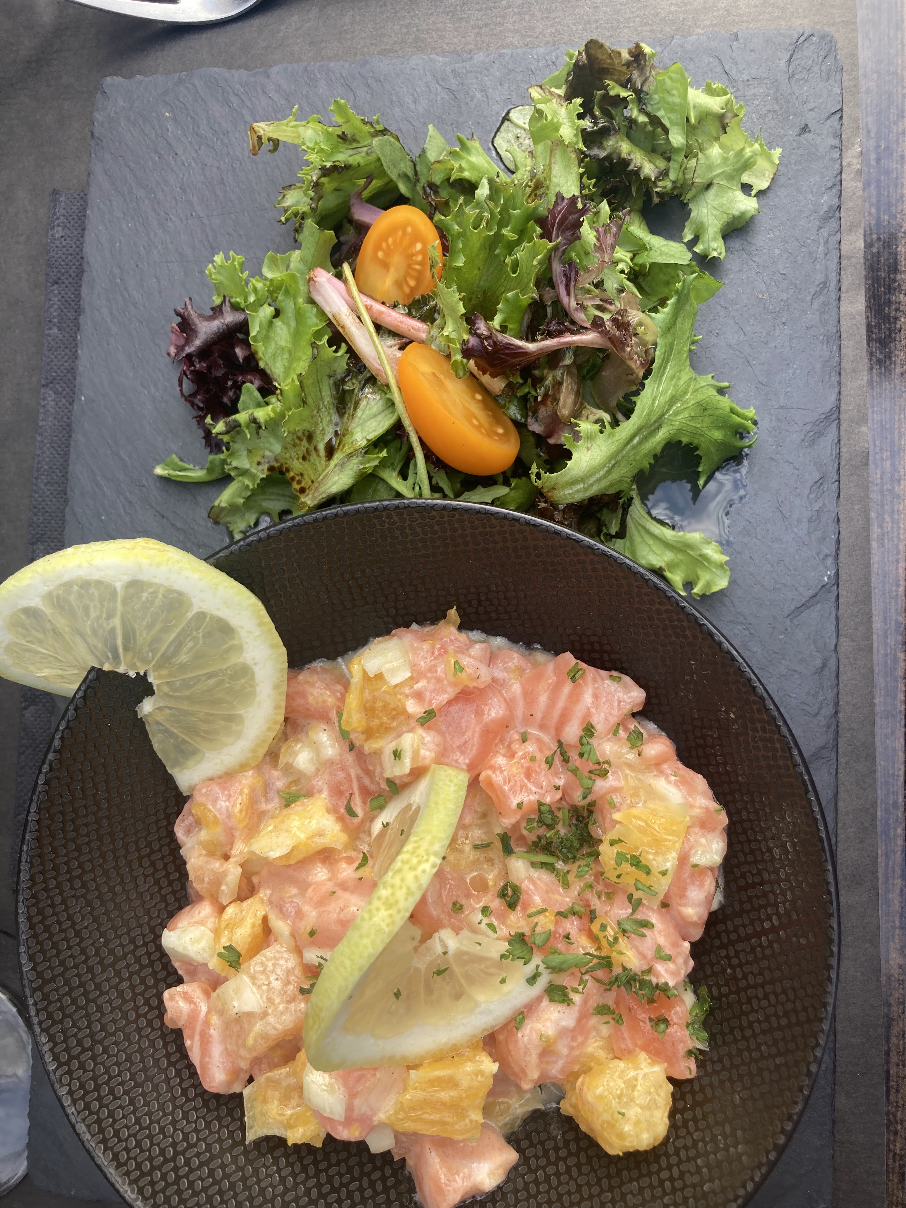Duo de saumon parfait ! Tomate mozzarella sentie artisanale, Risotto tellement savoureux ! Sorbet citron piquant à souhait ! J'y retournerais certainement. Toilettes propres,