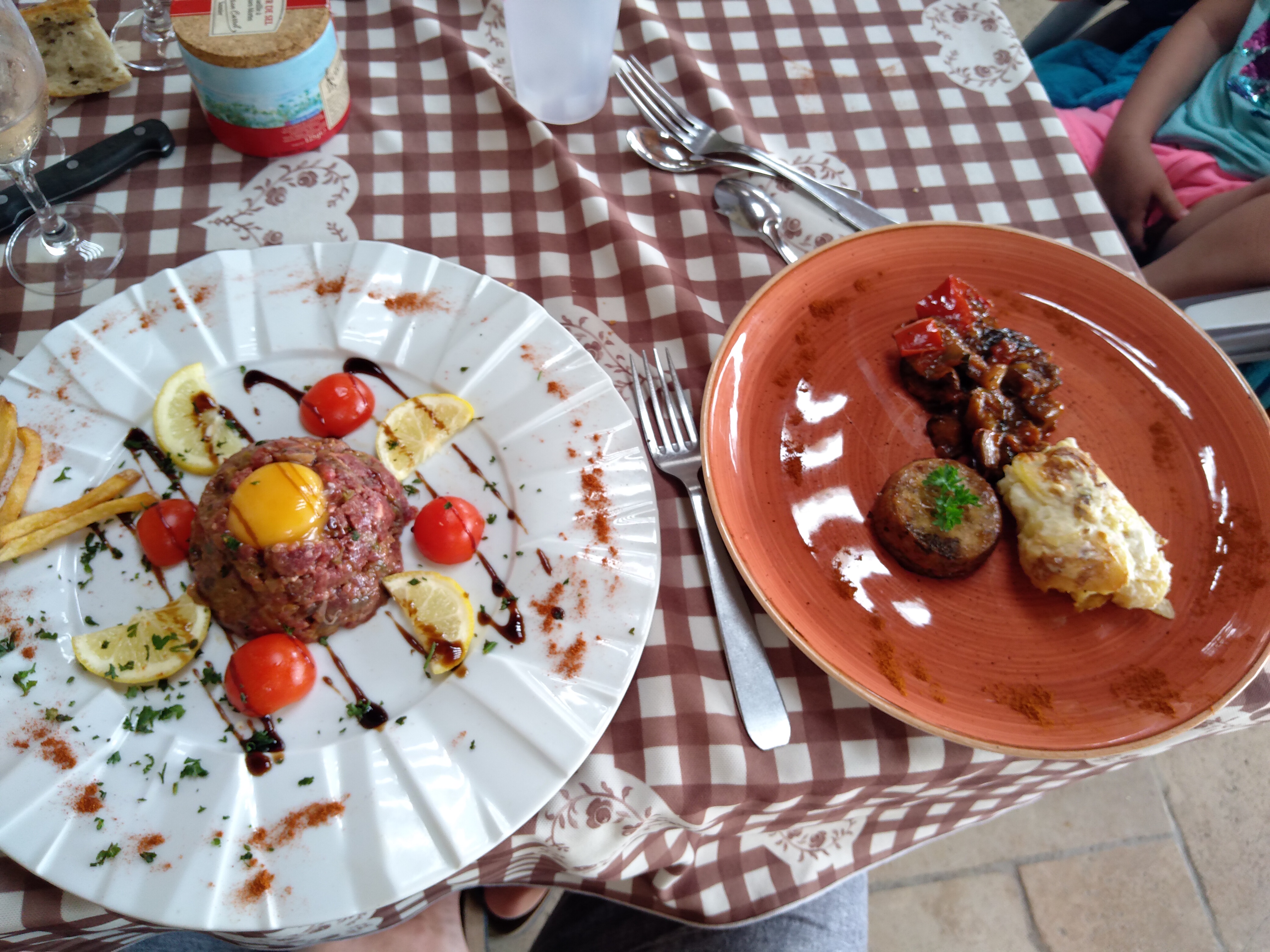 Un repas traditionnel camarguais ! Viande de taureau fantastique! Le dessert est une véritable explosion gustative !