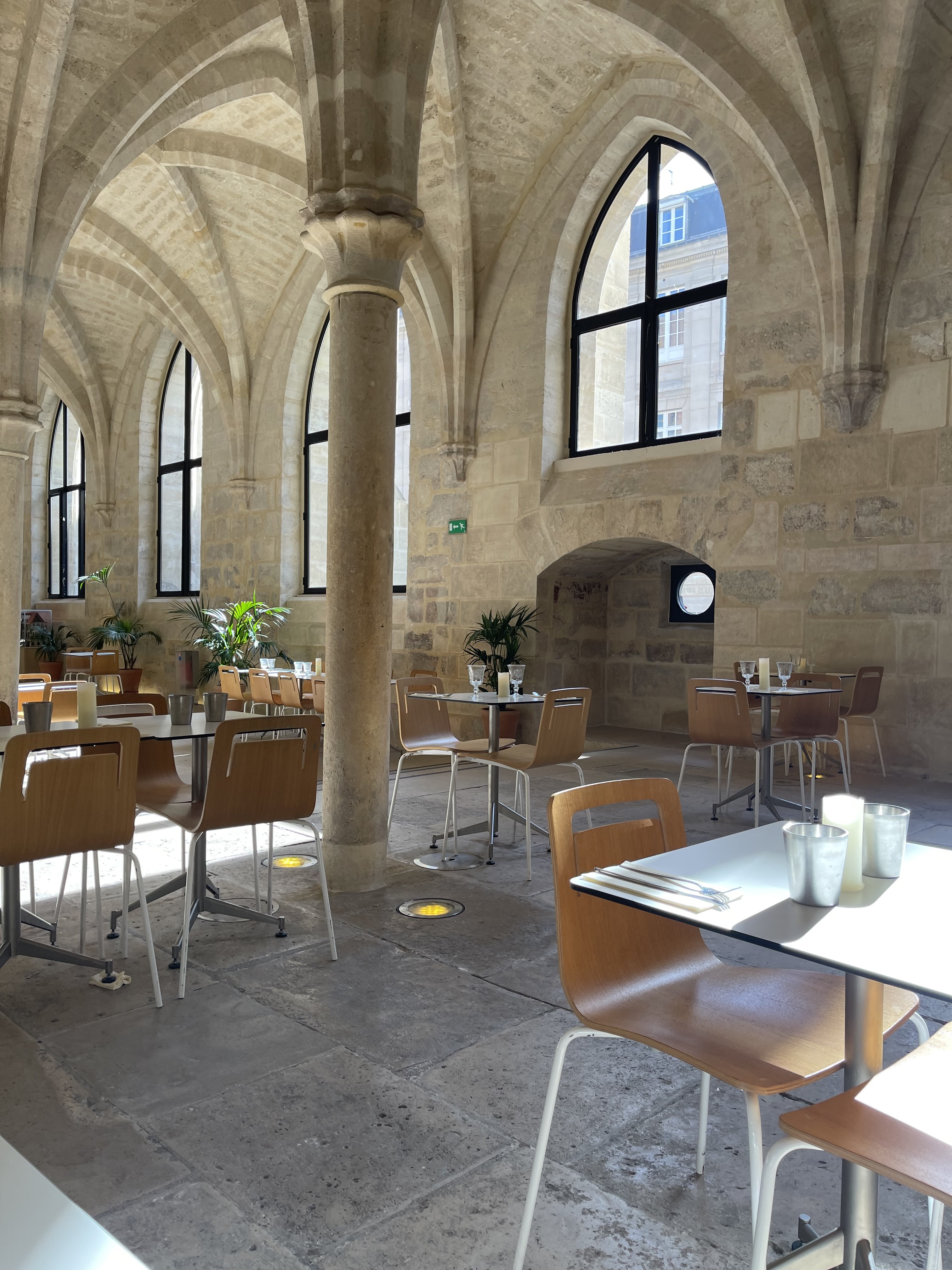 Bien pratique quand on travaille dans le coin, pour déjeuner ou pour un café ! Une immense salle avec des colonnes de pierre comme des arbres, le tout dans une atmosphère hors du temps puisque le lieu date du XIIIe siècle 😮