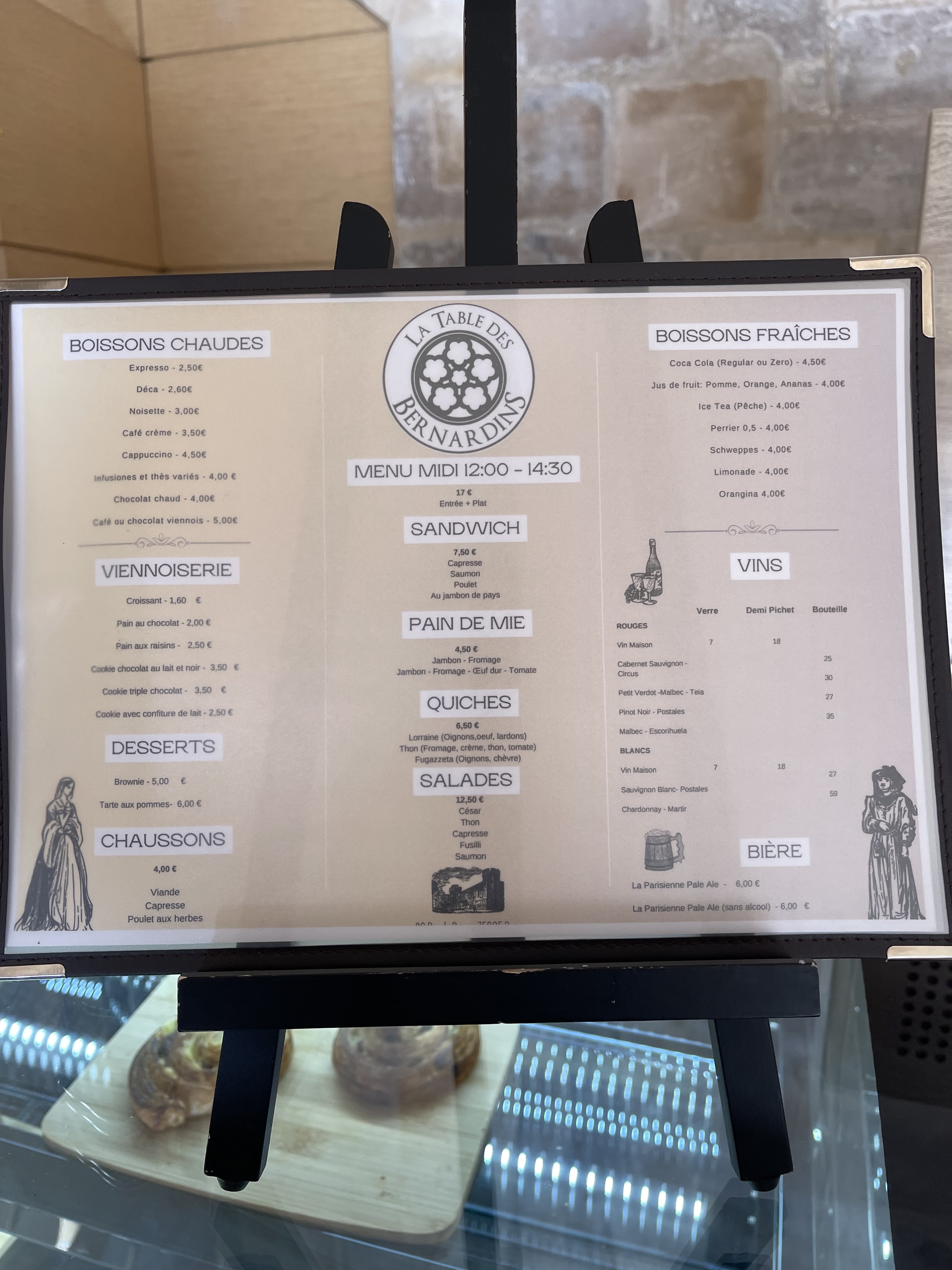 L'ambiance des lieux est étonnante, au sein de la voûte de cet édifice du XIIIe siècle. Les arches baignées de soleil étaient fascinantes. La Table des Bernardins est située au fond de la salle massive. Le café était moyen et liquide, le brownie était bon cependant. Ils ont également un menu pour le déjeuner si vous cherchez de la nourriture. Prenez-en pour vous promener, ça vaut le détour !