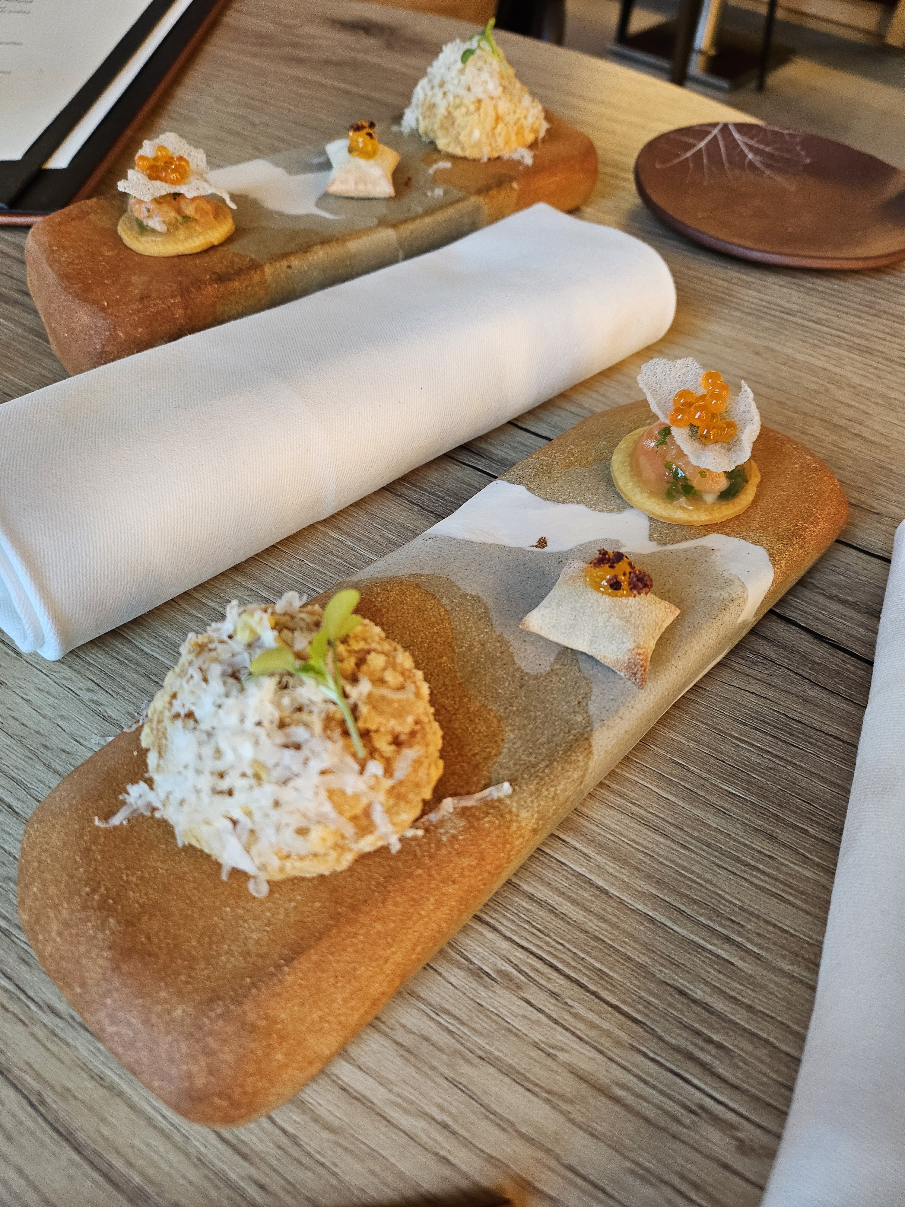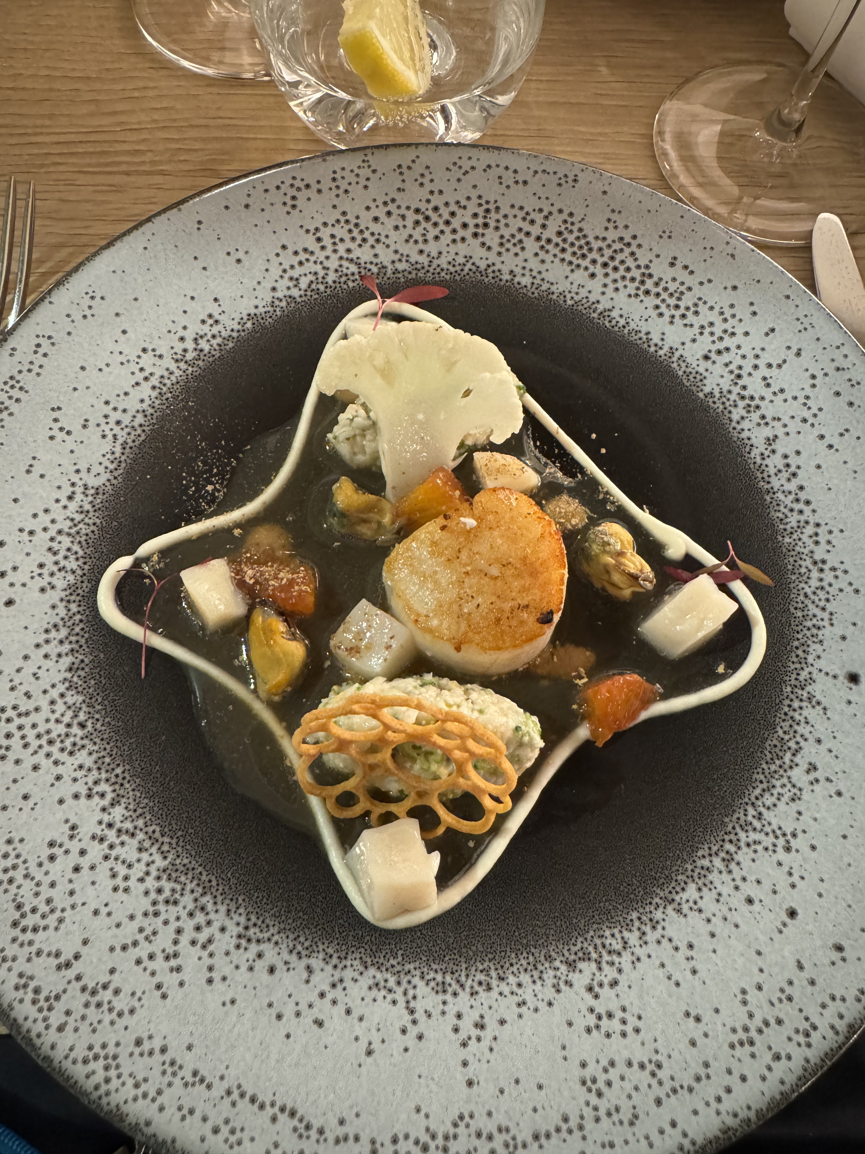 Succulent 😋Un très bon accueil dans un endroit sympa,épuré comme j’aime (le seul bémol,le plafond 😬😉) et un repas excellent avec bcp de saveurs,une présentation très soignée…..Merci bcp à toute l’équipe 👏🏻👏🏻