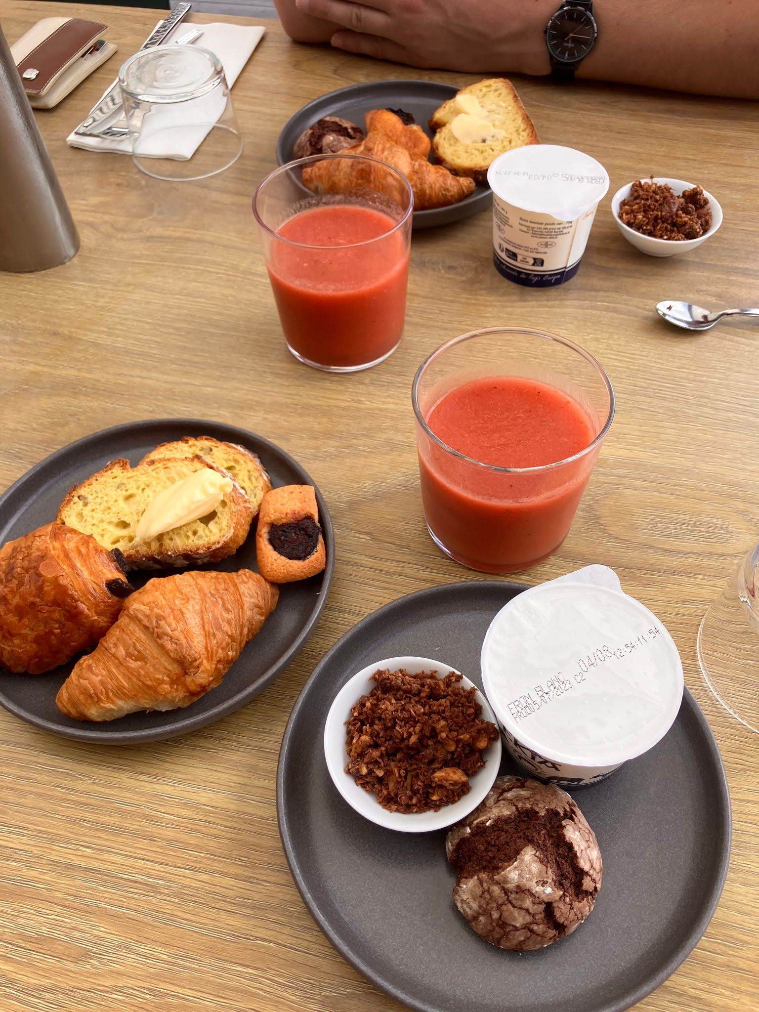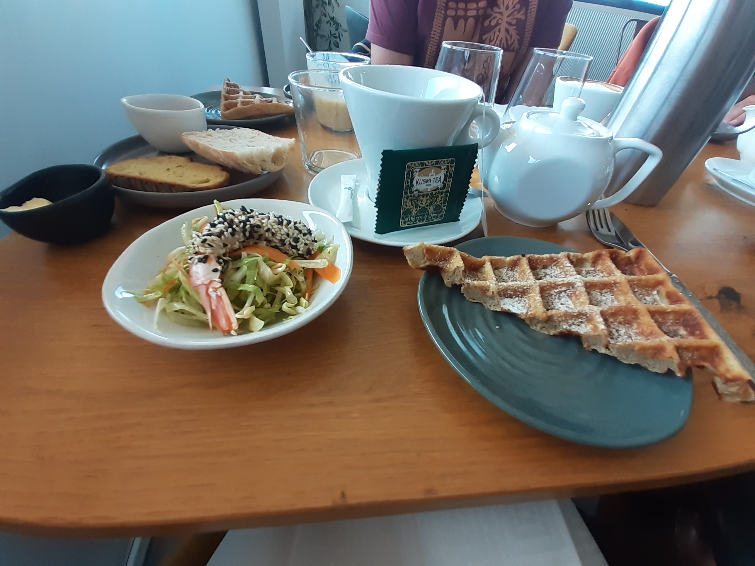 Nous nous sommes régalés ! Le buffet composé de viennoiseries, petits gâteaux fait maison, briochettes dodues, pain, fromage et yaourt est à volonté. Smoothie de fruits frais, gaufre, salade viet, notre table débordait de petits plats qui n'étaient pas seulement beaux à voir mais bons. Une mention spéciale pour les oeufs brouillés à la truffe. Un bonheur.