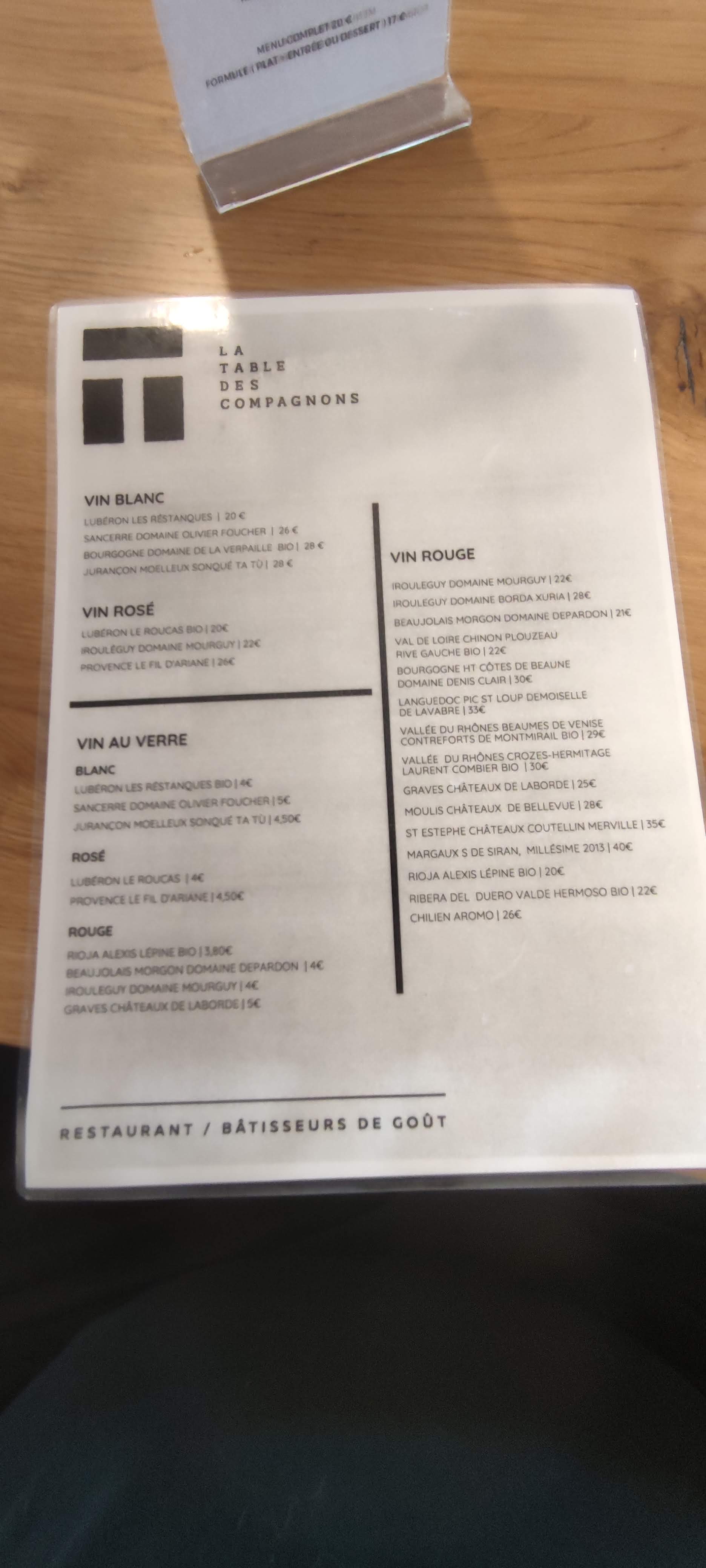 Formidable moment passé à la Table des Compagnons. Tous les plats étaient exquis. On ressent vraiment l'attention portée au choix des produits, à l'équilibre des saveurs et au travail de dressage. Merci à Mickael Degueurce et à son équipe pour l'accueil chaleureux. Je recommande vivement.