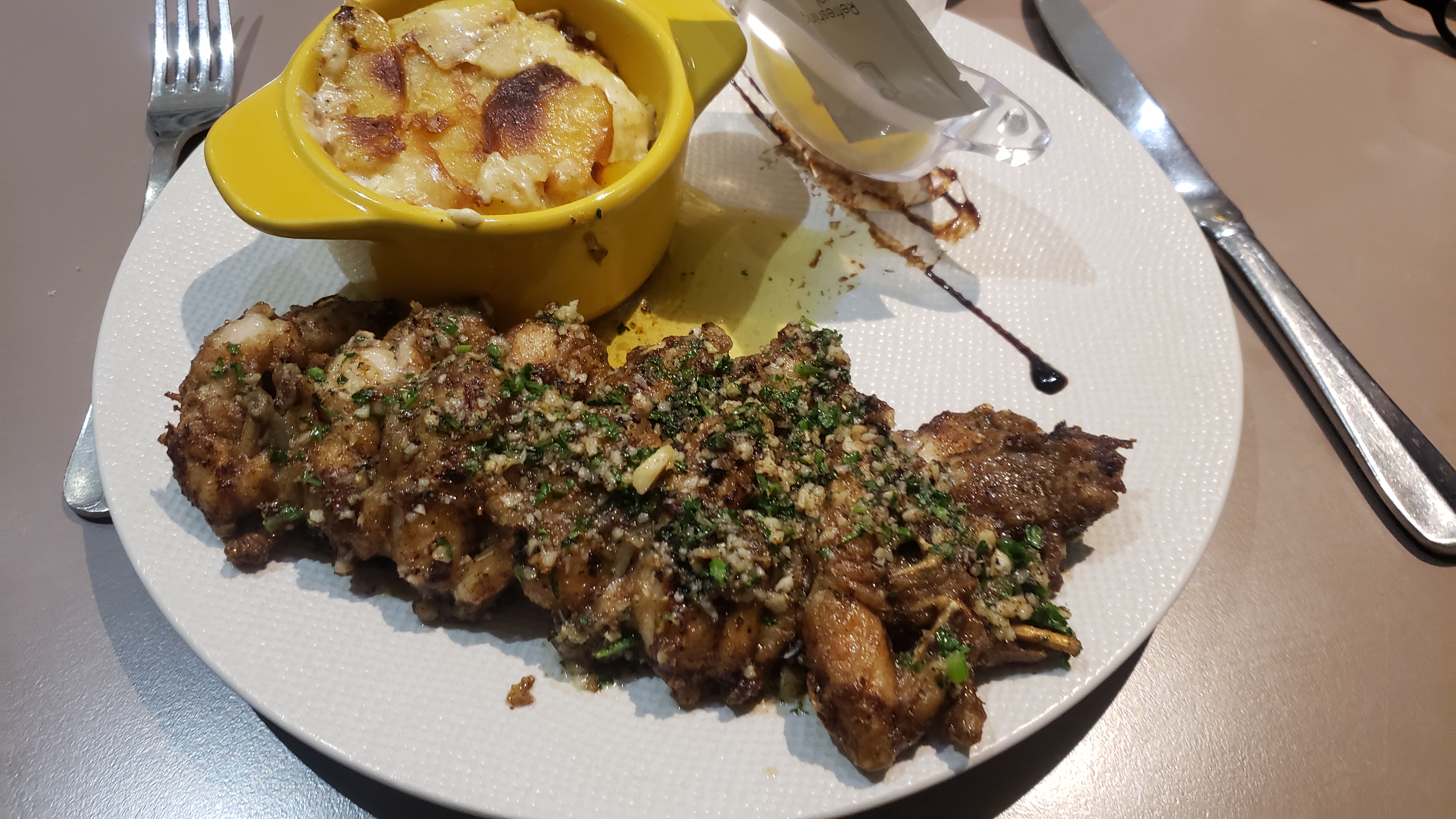 Belle découverte pour ce restaurant bistronomique. Nous avons choisi la dégustation de grenouilles persillées qui étaient excellentes, copieuses et présentées en brochettes : original. Les grenouilles sont longues à déguster et nous les avons terminées froides, on peut regretter la présentation traditionnelle du plat maintenu au chaud sur chauffe plat. Dommage !