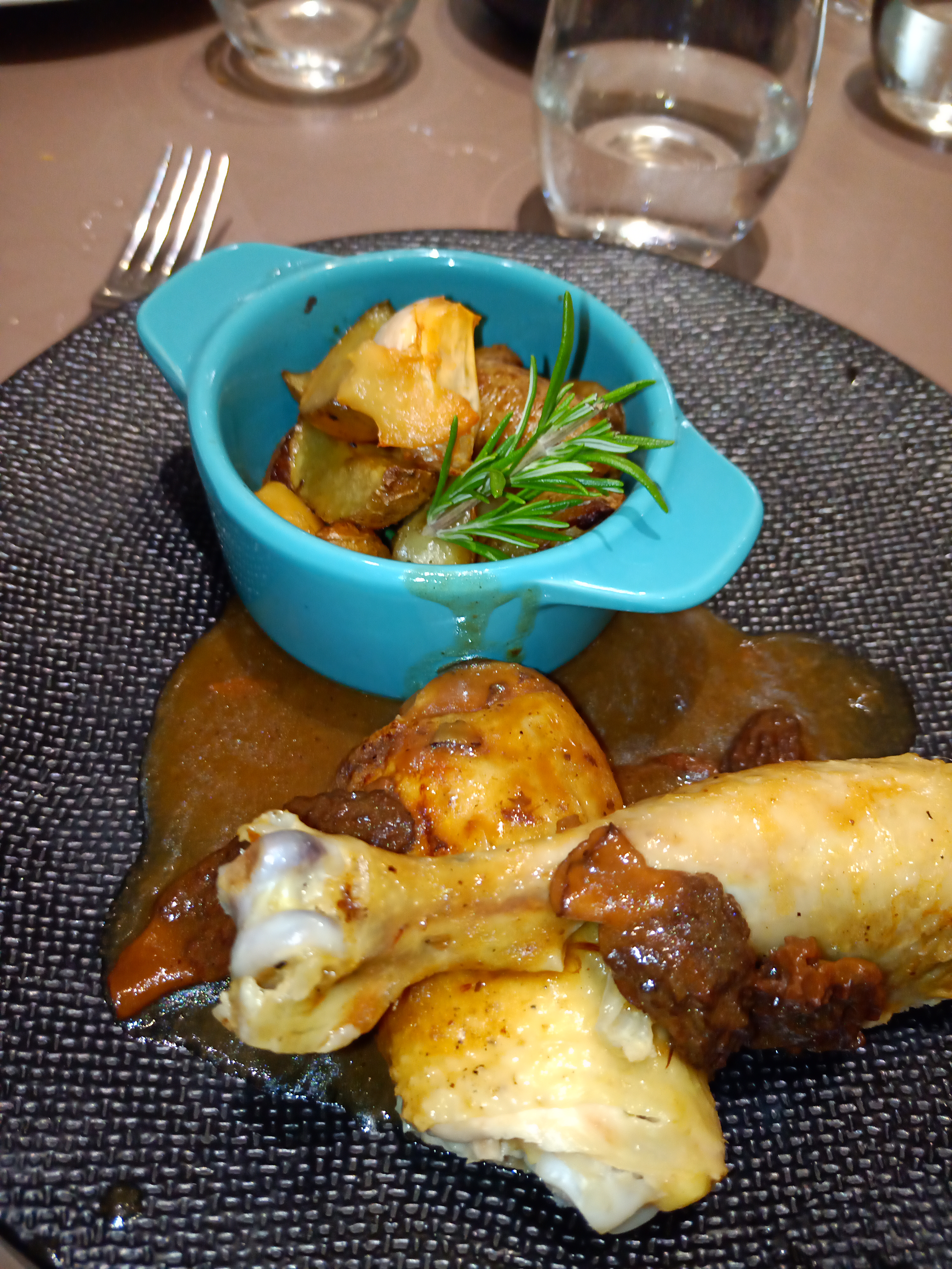 assez partagé, la cuisine est de bonne qualité mais un peu léger niveau quantité surtout par rapport au prix payé...les brochettes de grenouilles sont très bonnes ainsi que les pommes de terres grenailles qui accompagnaient les plats, pour ce qui est de la volaille fermière au jus de morilles c'est bon mais la viande était un peu dur à mon gout (peut-être la proposer en deux cuissons (cuisson lente puis juste toasté) pour développer ses aromes. même constat pour les desserts (café gourmand) c'est bon mais rien d'extraordinaire et toute petite quantité. Au finale un peu déçu, il y avait beaucoup de monde du coup le service avait l'air un peu débordé : on n'a pas eu droit aux mises en bouches, il a fallu redemander pour avoir une carafe d'eau pourtant demandé avec la commande pareil pour le sucre pour le fromage blanc arrivé sans....donc 102 euros pour 2 menus enfants 14 et 18 euros deux plats deux verre de vin (2X3 euro) et un café gourmand c'est un peu cher