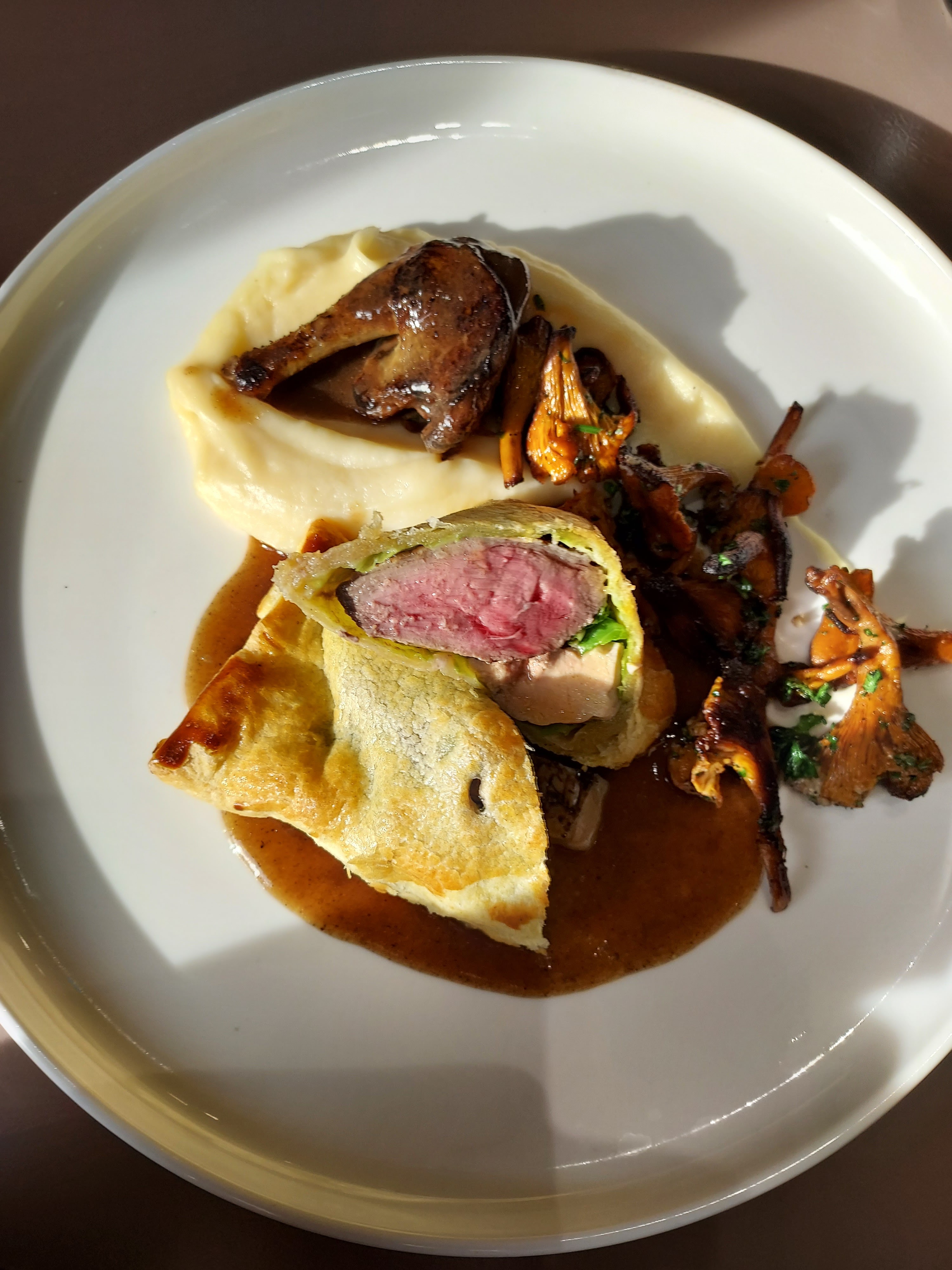 Repas de midi génial on s est régalé le foie gras les grenouille le poulet aux morilles Le filet de bœuf était de bonne qualité bonne cuisson Tres bon vin Le menu enfant etait sympa Et le service agréable Merci pour ce bon moment