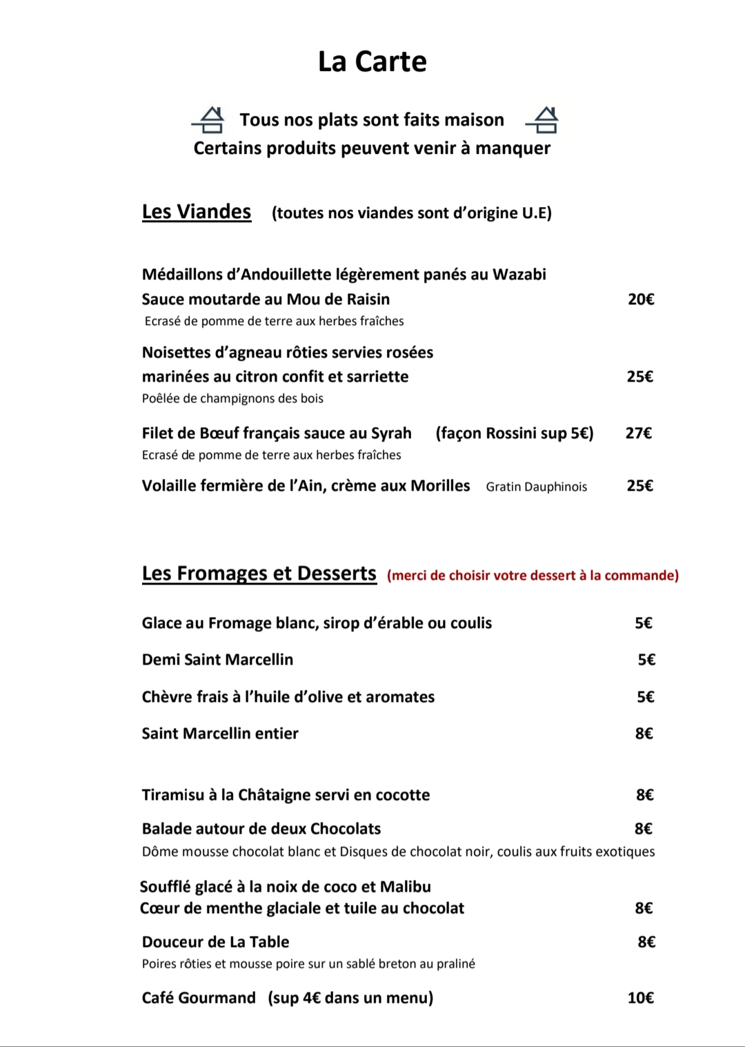 Une belle découverte lors d'un trajet depuis Lyon. Une belle table et des bons mets et une jolie carte des vins.